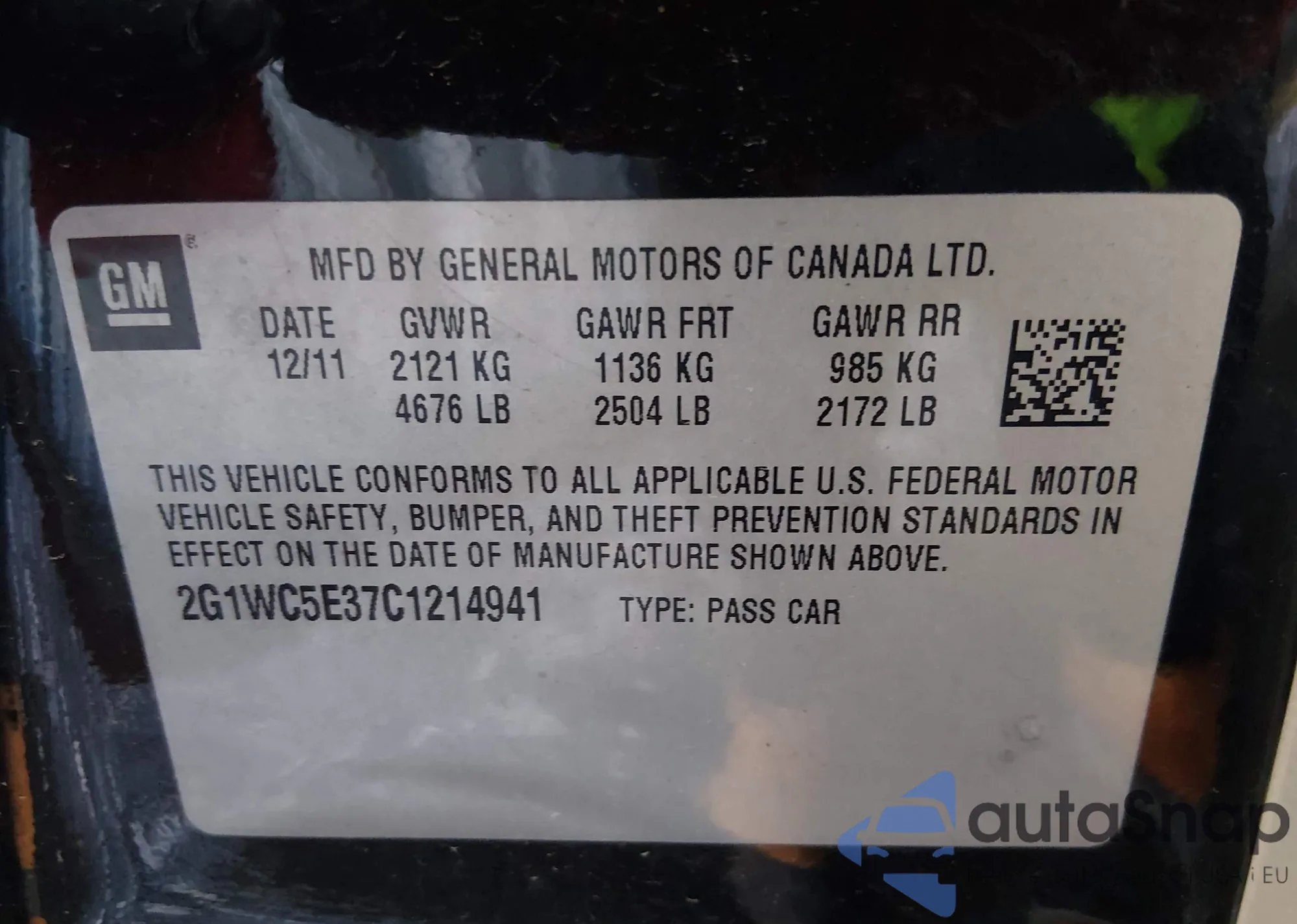 VIN: 2G1WC5E37C1214941