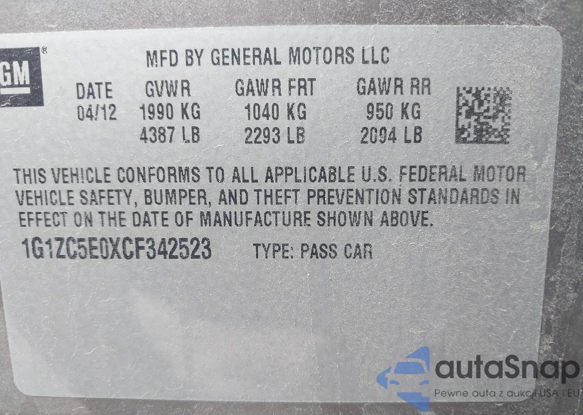 VIN: 1G1ZC5E0XCF342523