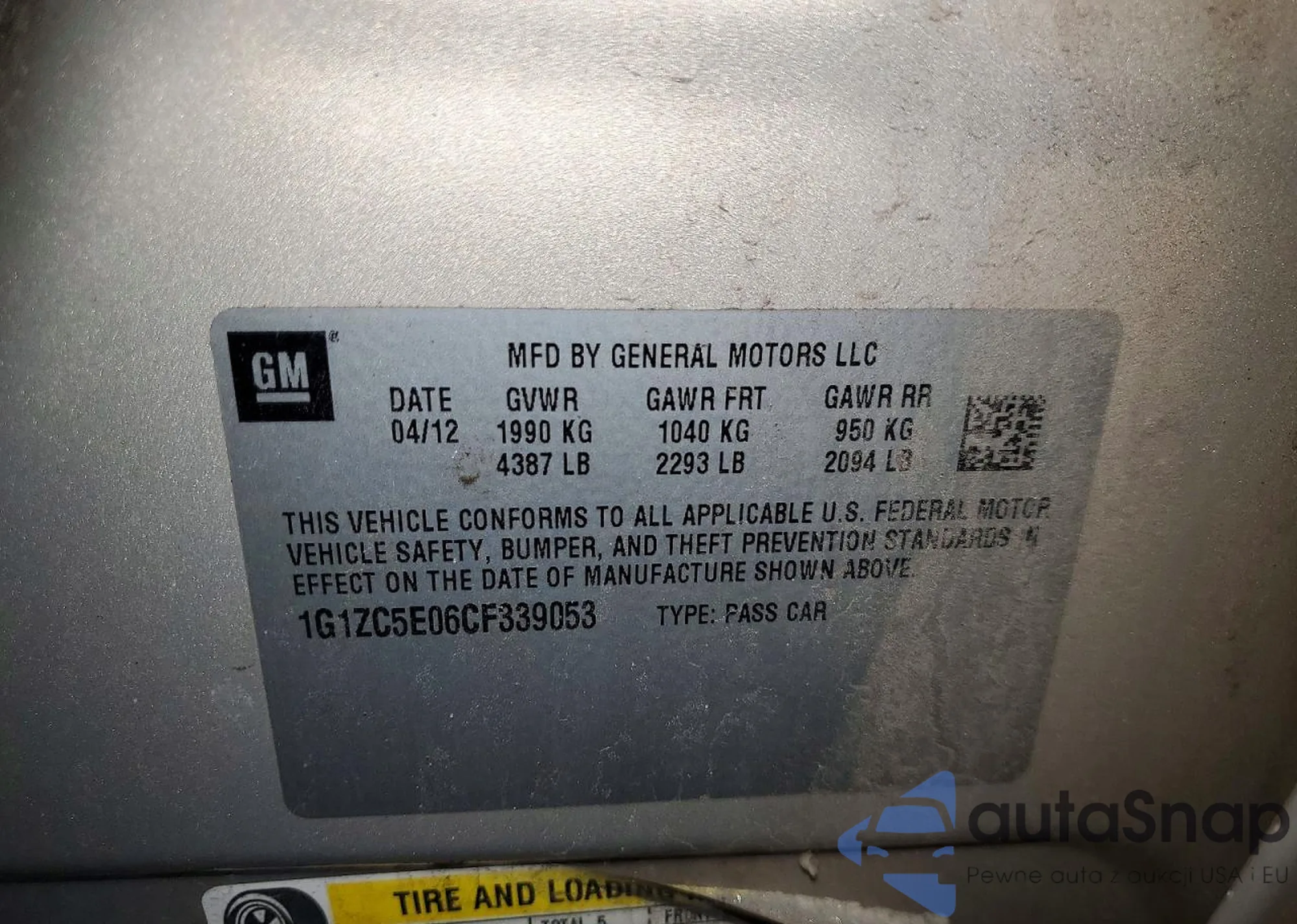 Samochód Chevrolet Malibu 2012 (VIN 1G1ZC5E06CF339053) ma dokumenty uniemożliwiające rejestrację. Mogą pojawić się trudności przy eksporcie i rejestracji. Skontaktuj się z ekspertami AutaSnap w celu znalezienia alternatywy.