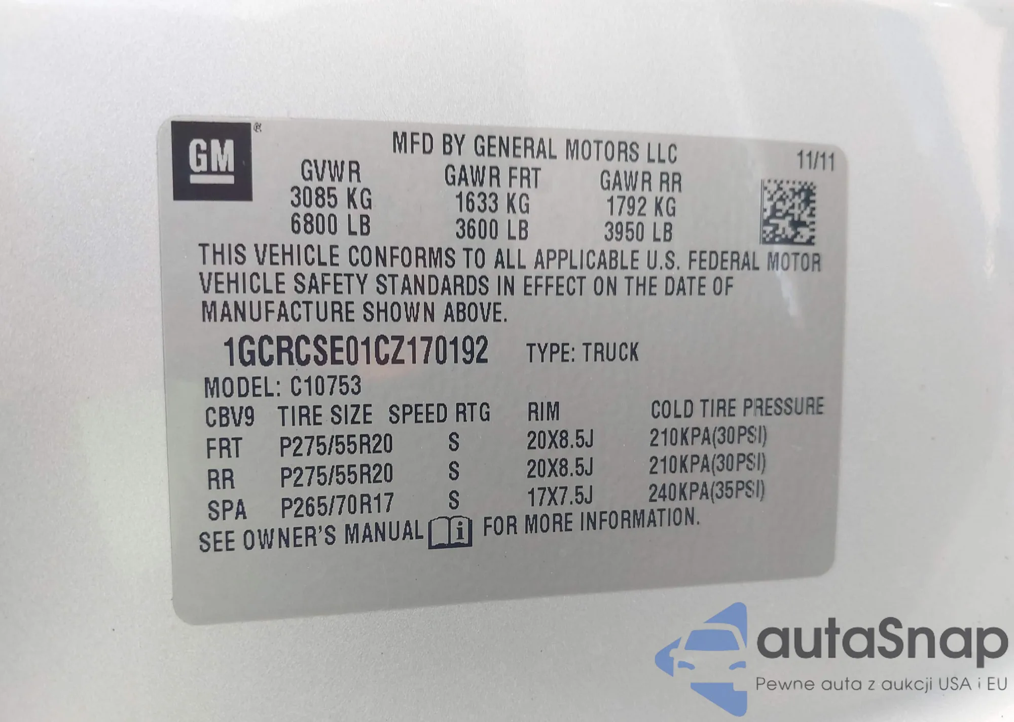 VIN: 1GCRCSE01CZ170192