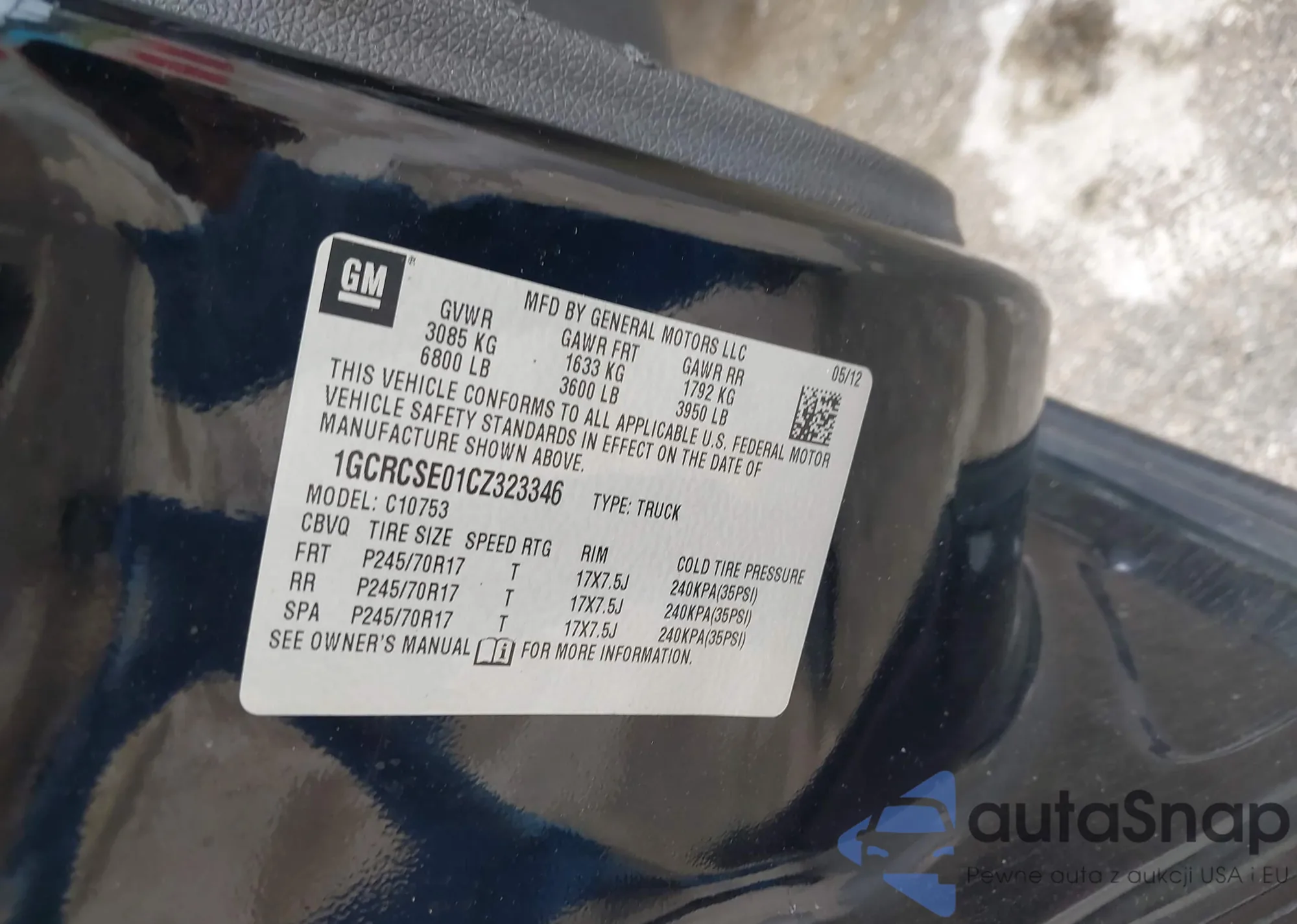 VIN: 1GCRCSE01CZ323346
