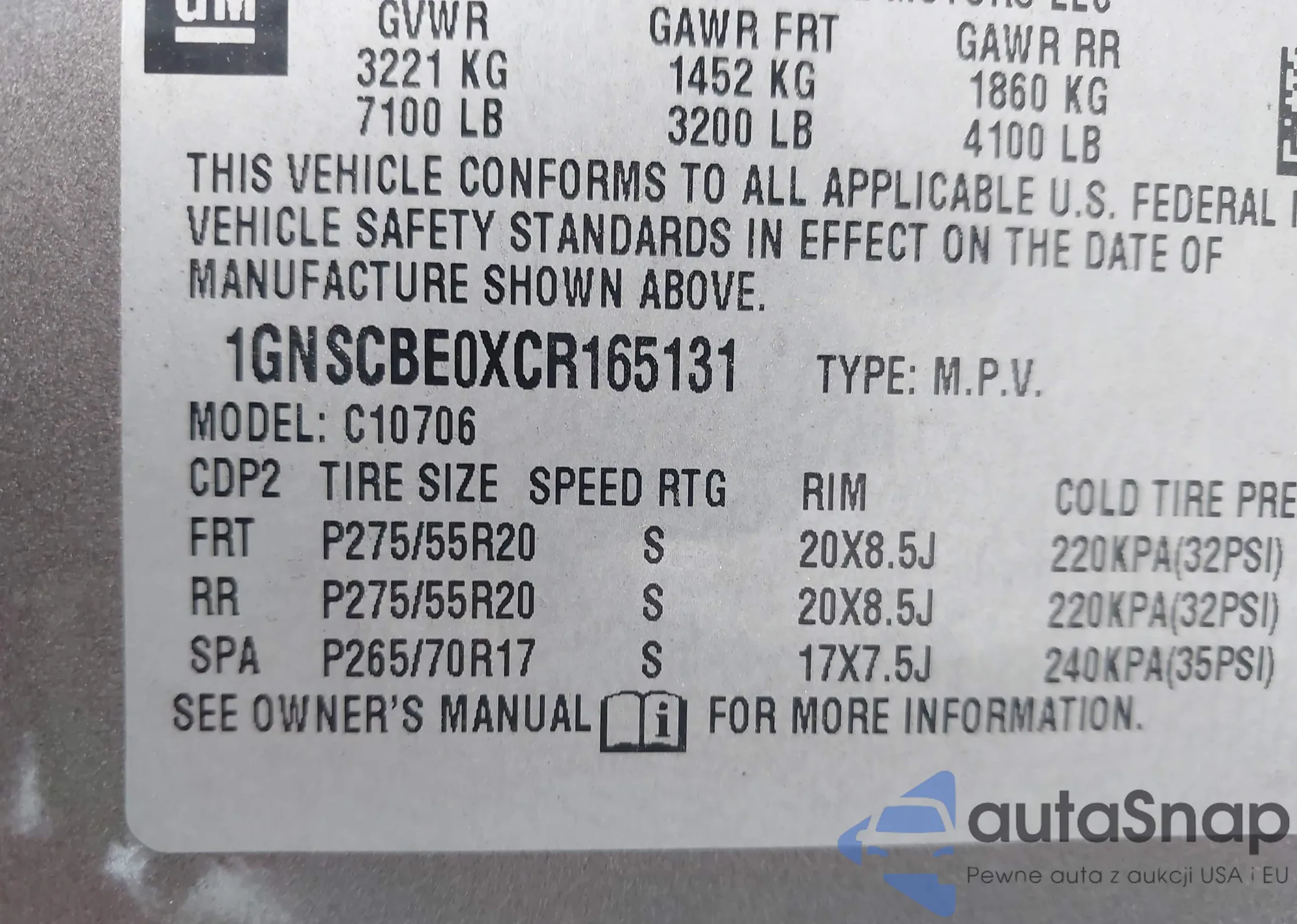 VIN: 1GNSCBE0XCR165131
