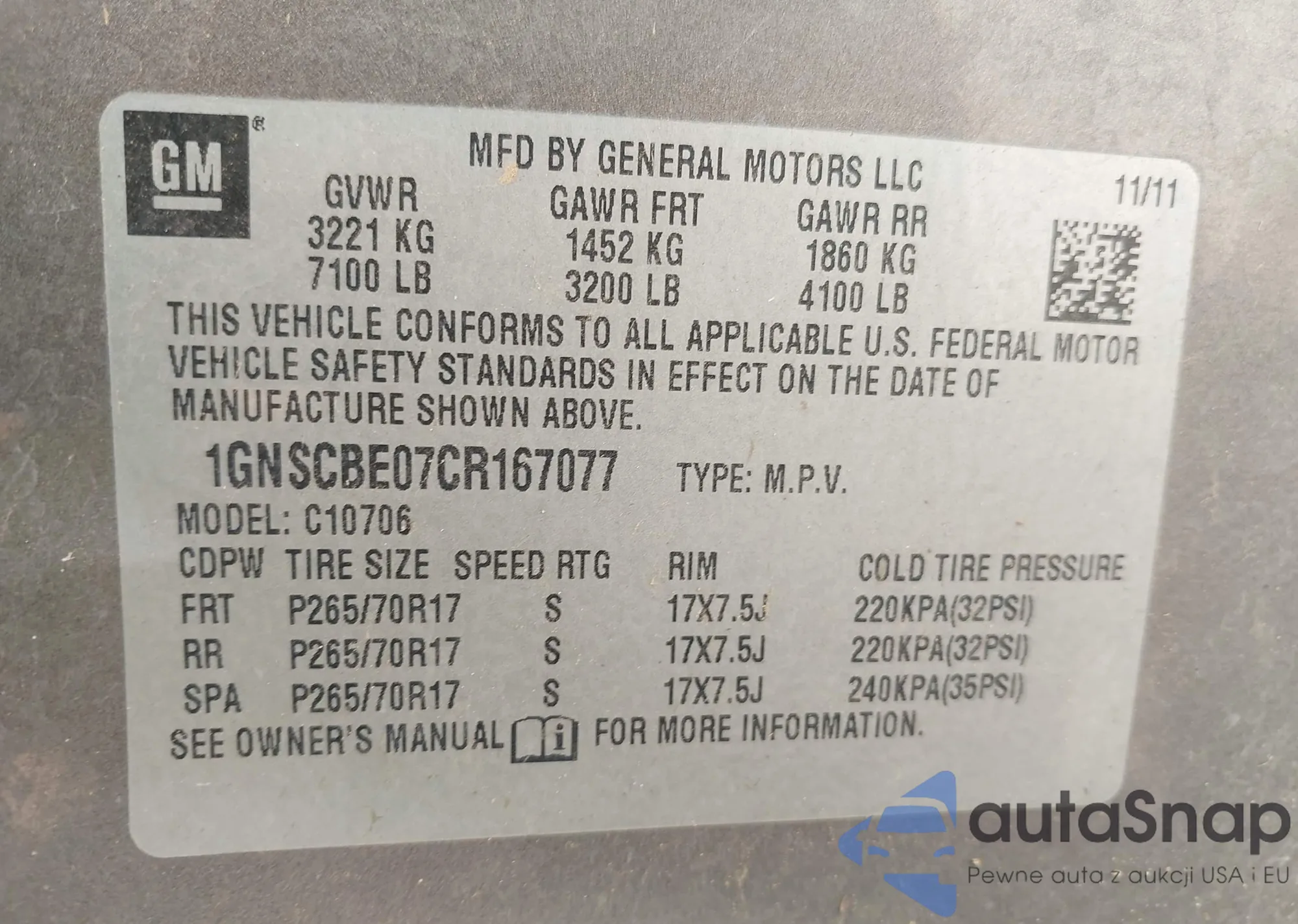 VIN: 1GNSCBE07CR167077