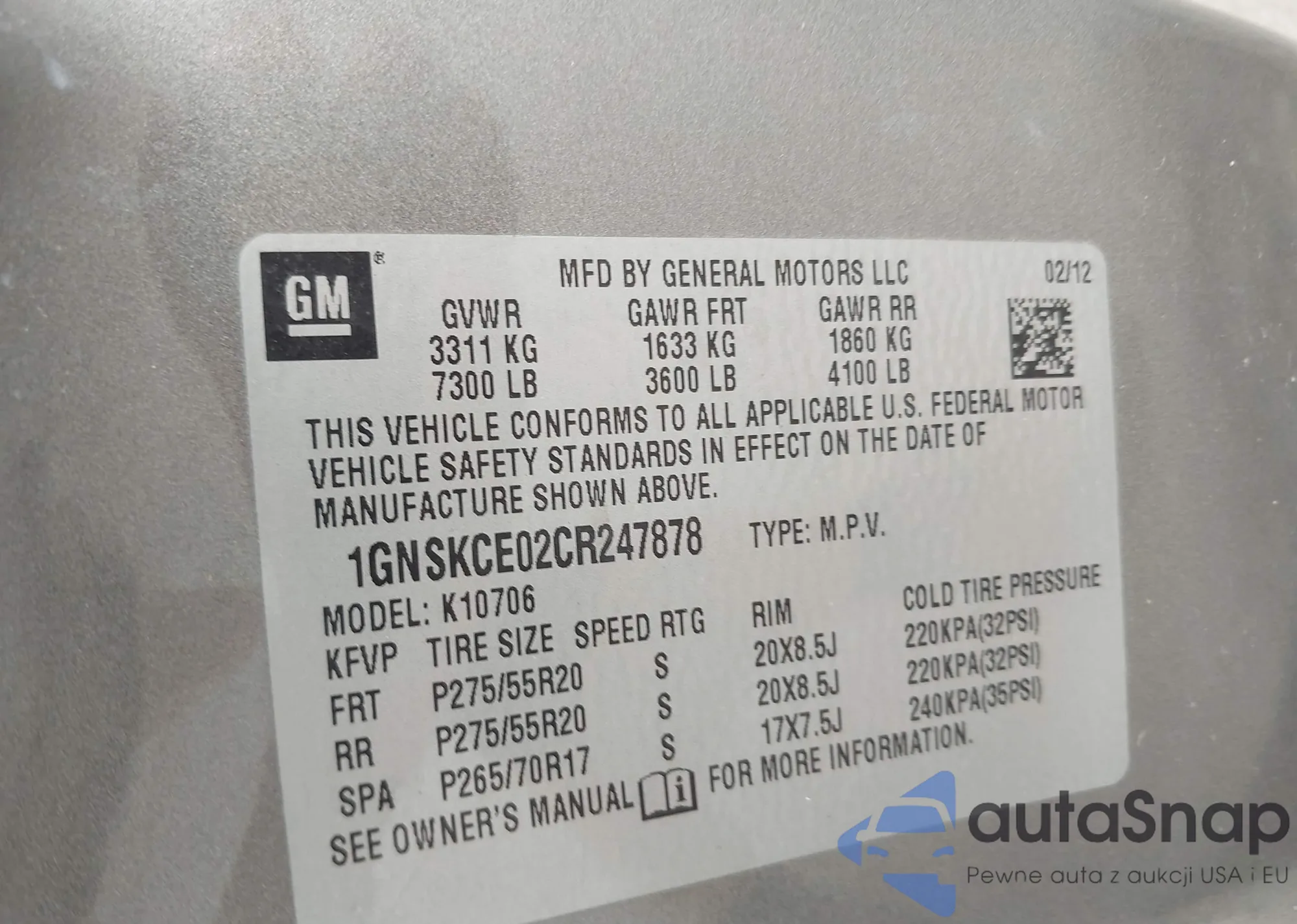 VIN: 1GNSKCE02CR247878