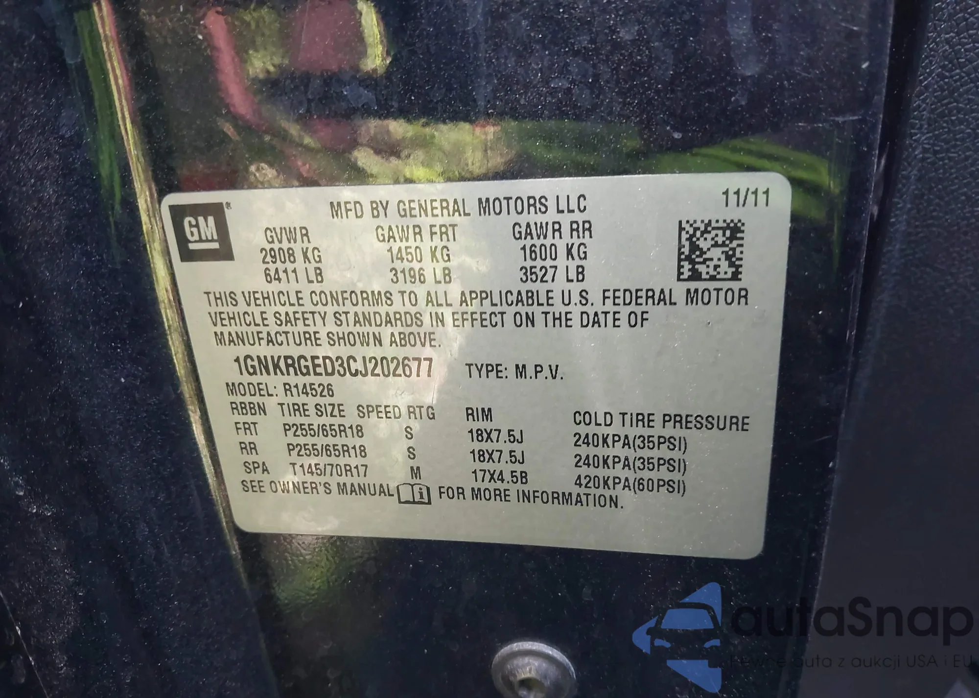 • VIN: 1GNKRGED3CJ202677