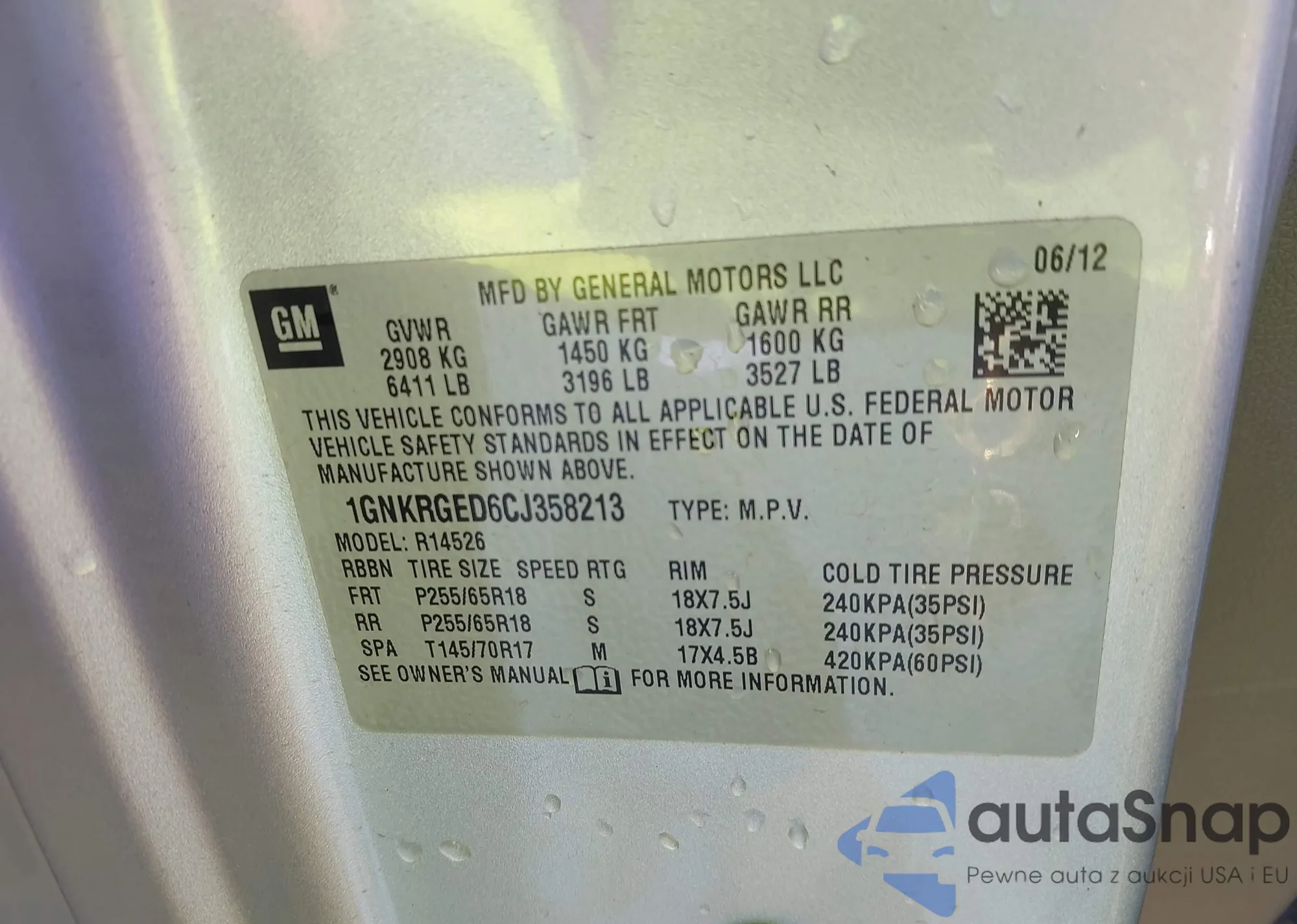 • VIN: 1GNKRGED6CJ358213