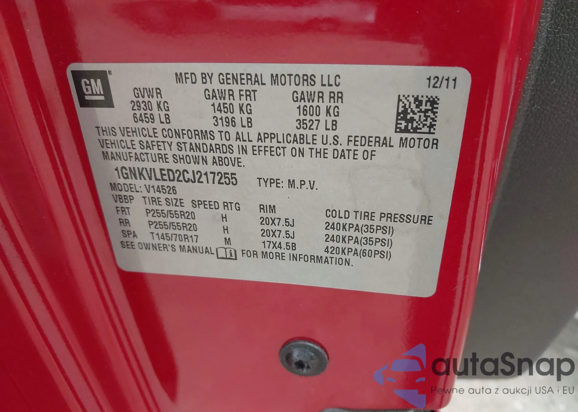 VIN: 1GNKVLED2CJ217255