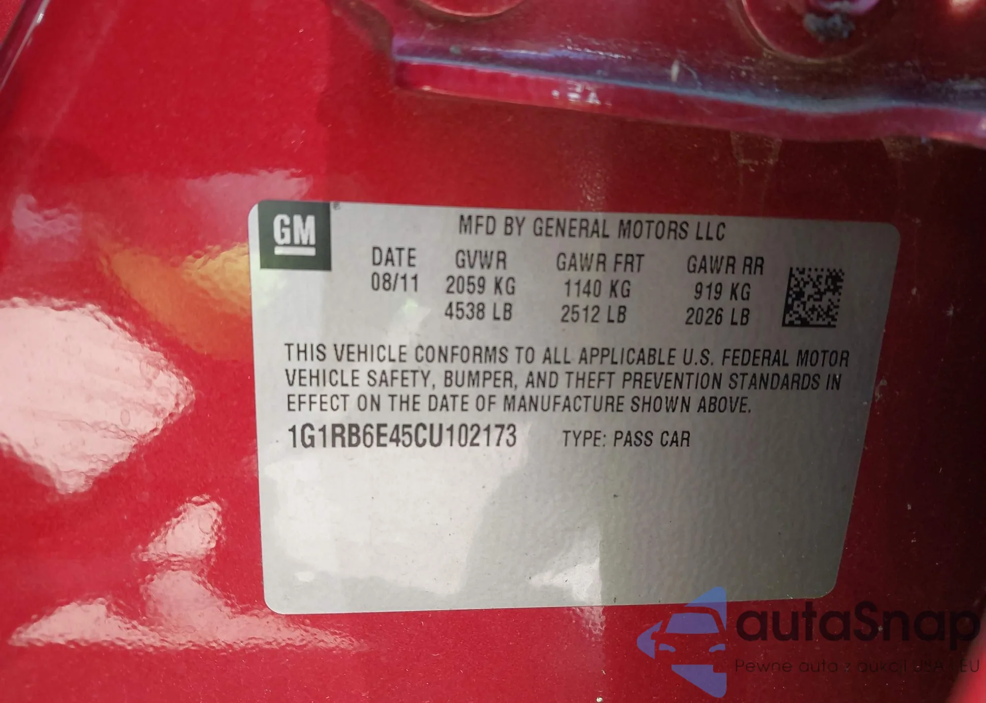 VIN: 1G1RB6E45CU102173