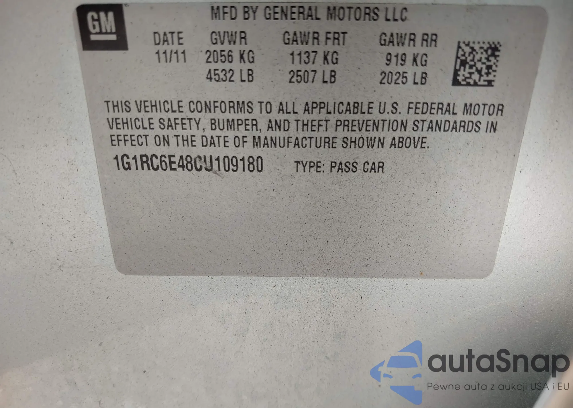 VIN: 1G1RC6E48CU109180