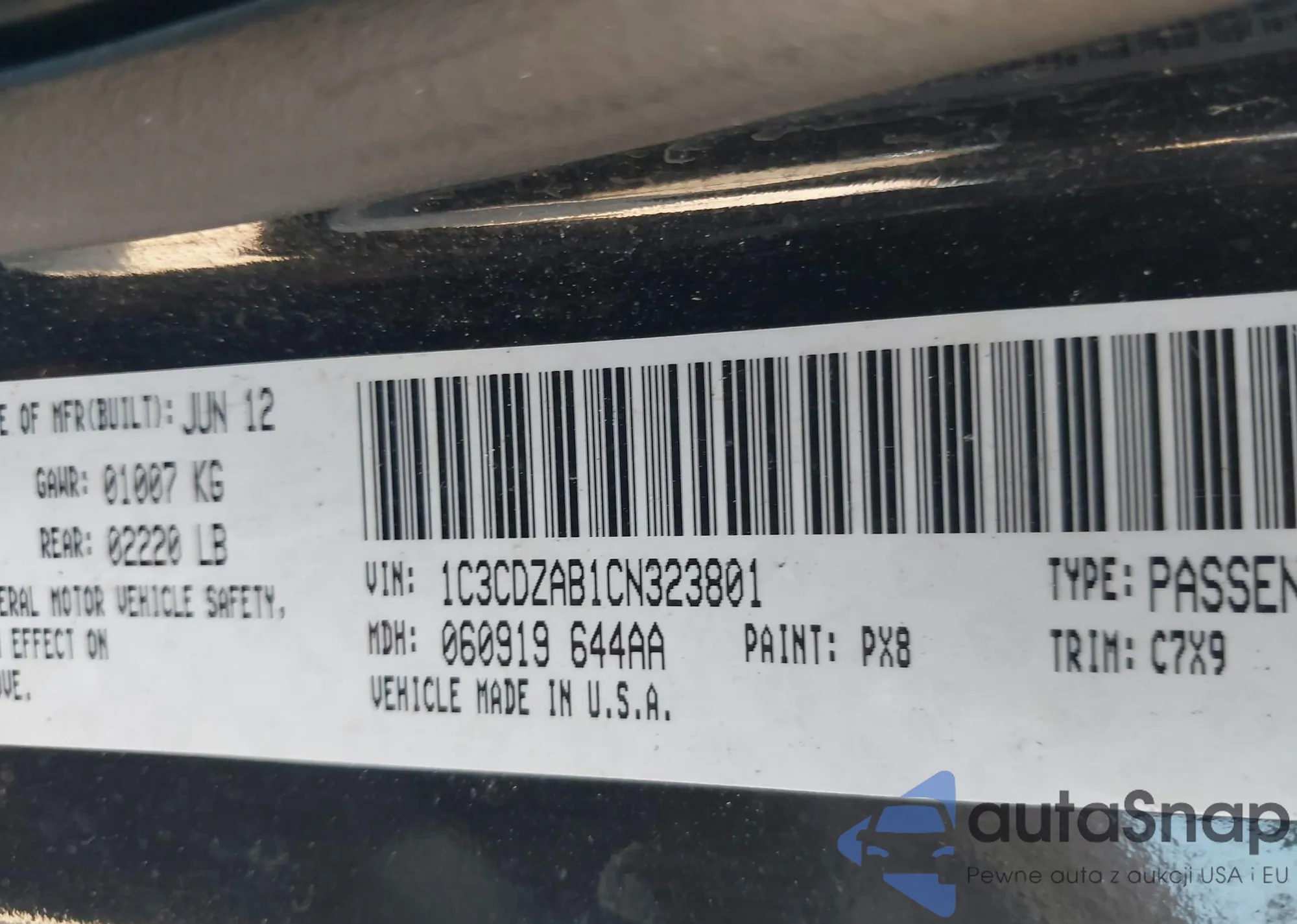 VIN: 1C3CDZAB1CN323801