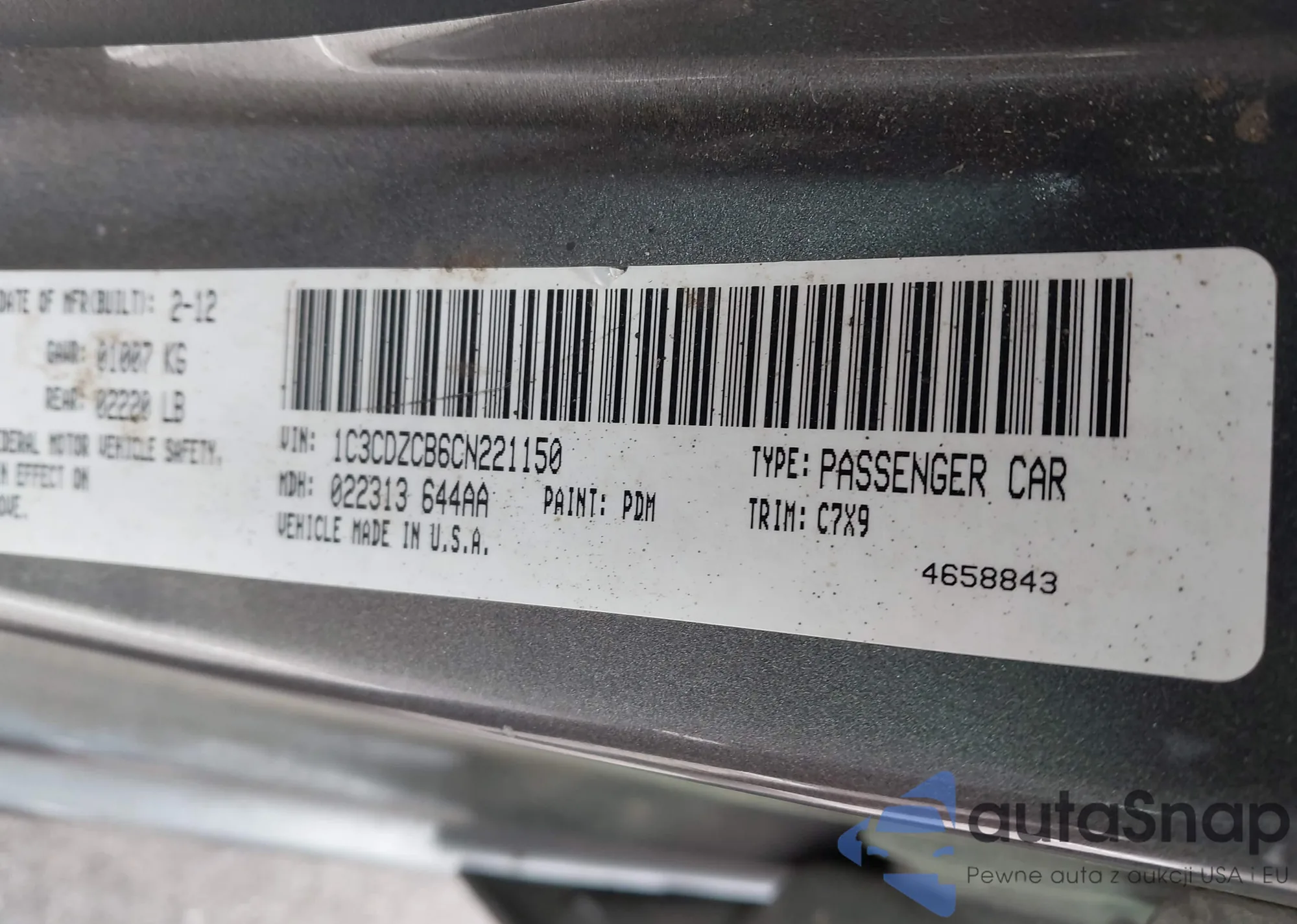 • VIN: 1C3CDZCB6CN221150