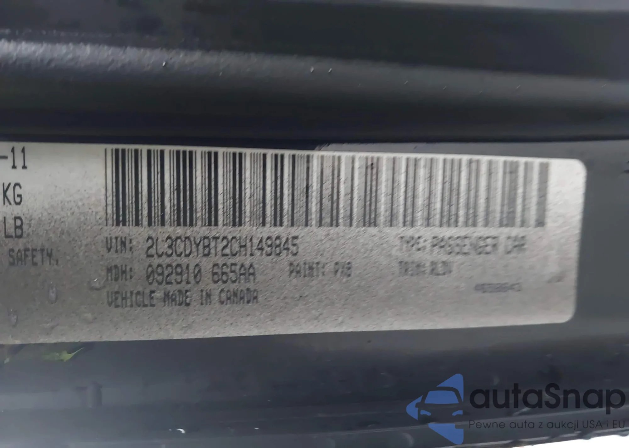 VIN: 2C3CDYBT2CH149845