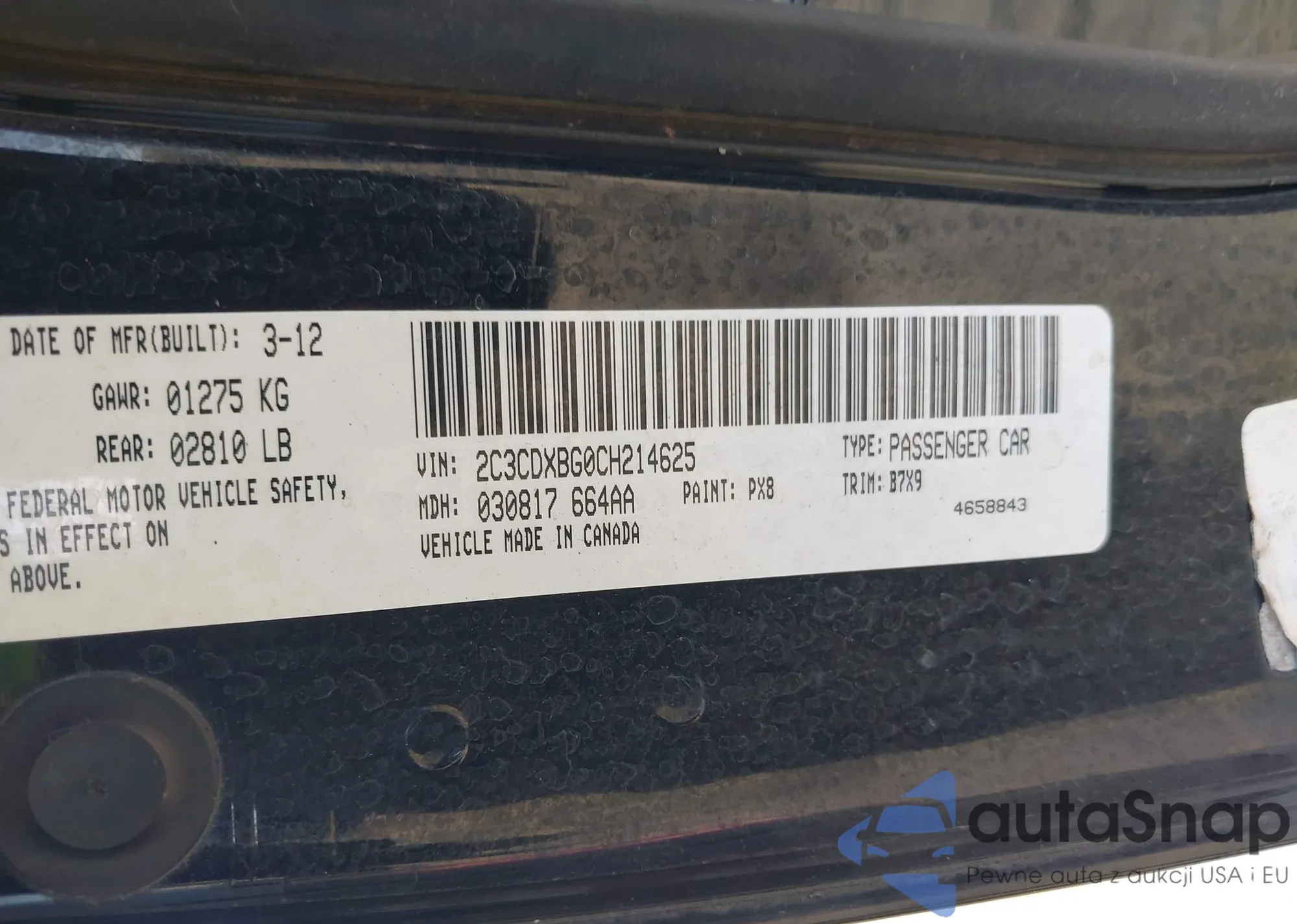 VIN: 2C3CDXBG0CH214625