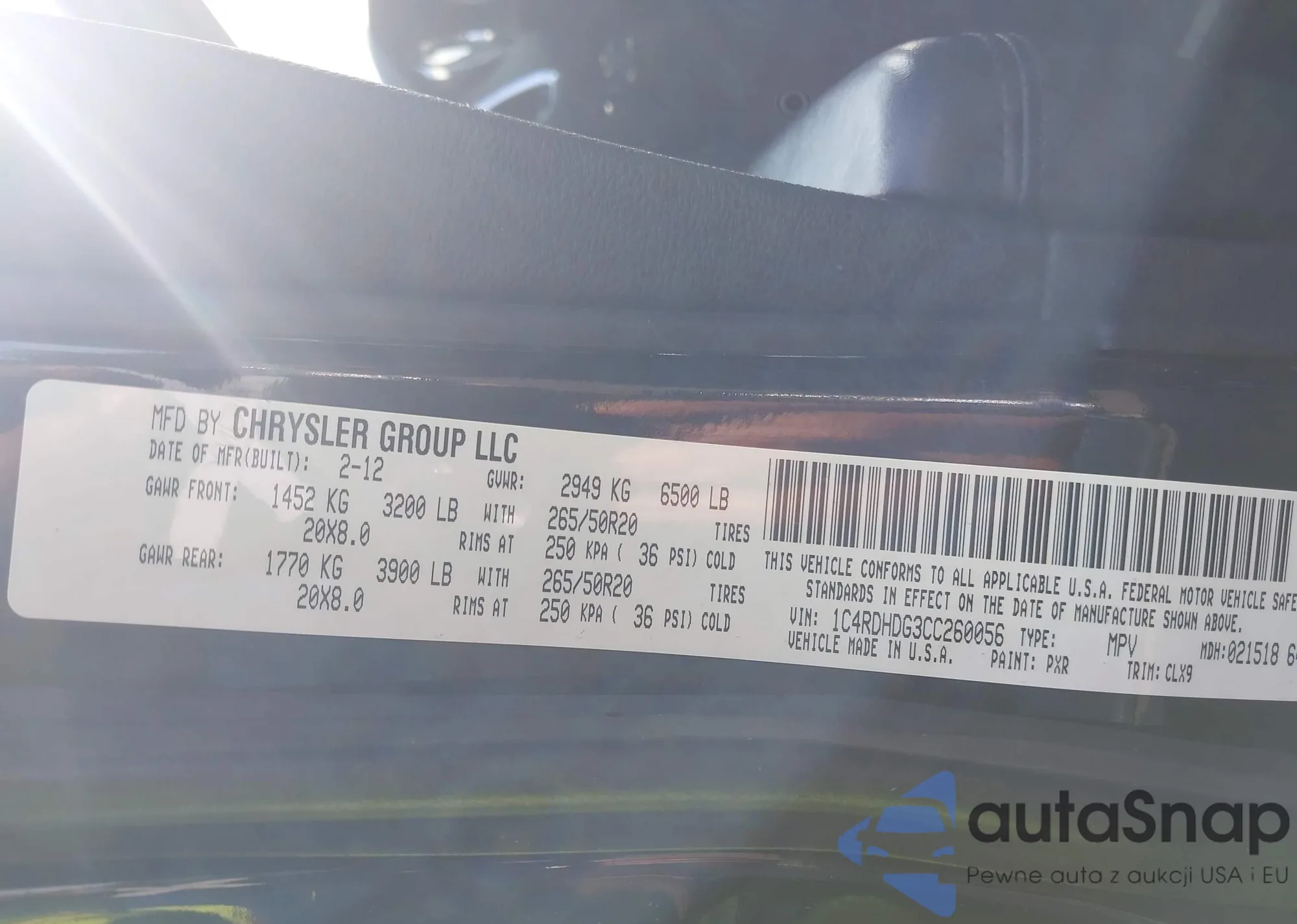 VIN: 1C4RDHDG3CC260056