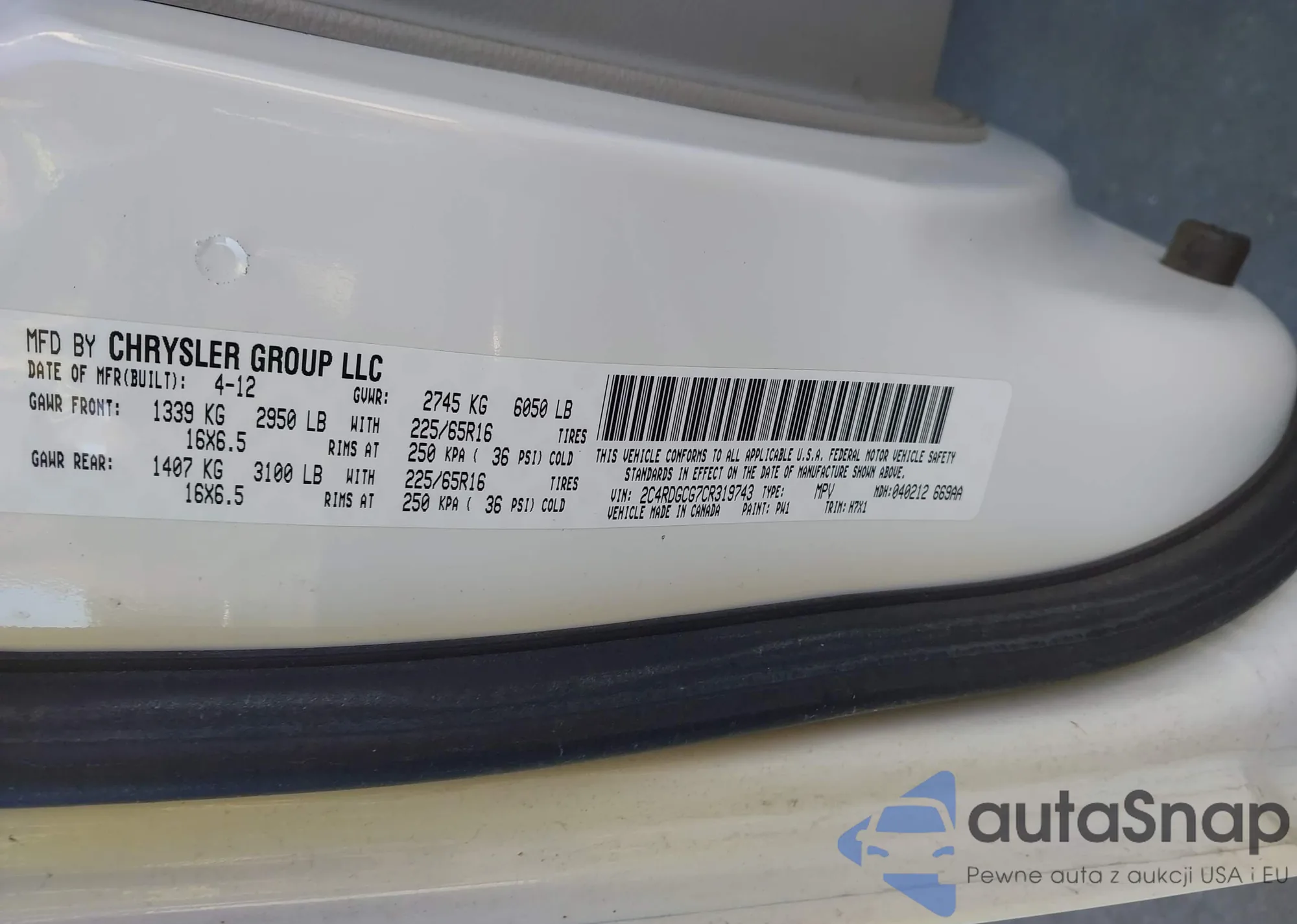 Samochód Dodge Caravan 2012 (VIN 2C4RDGCG7CR319743) nie był wcześniej licytowany. Dokumenty są czyste, przebieg odpowiada lub jest niższy niż średnia rynku. Sprzedaje go firma ubezpieczeniowa – polecamy zakup. Dostawa do portu zajmie ok. 6–8 tygodni.