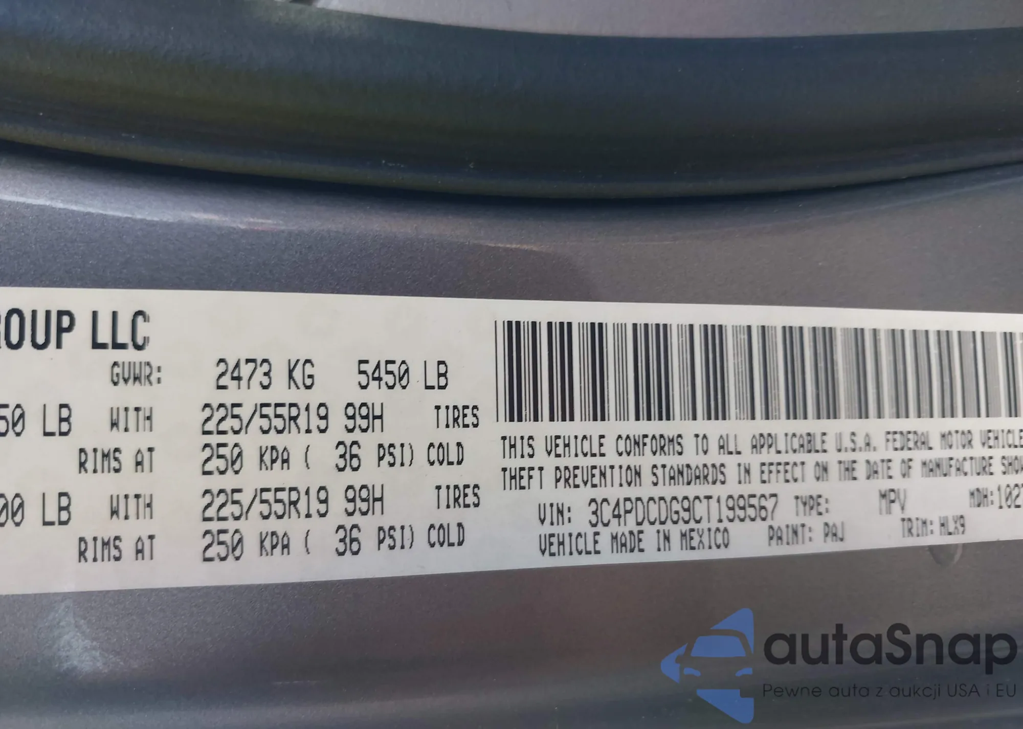 VIN: 3C4PDCDG9CT199567