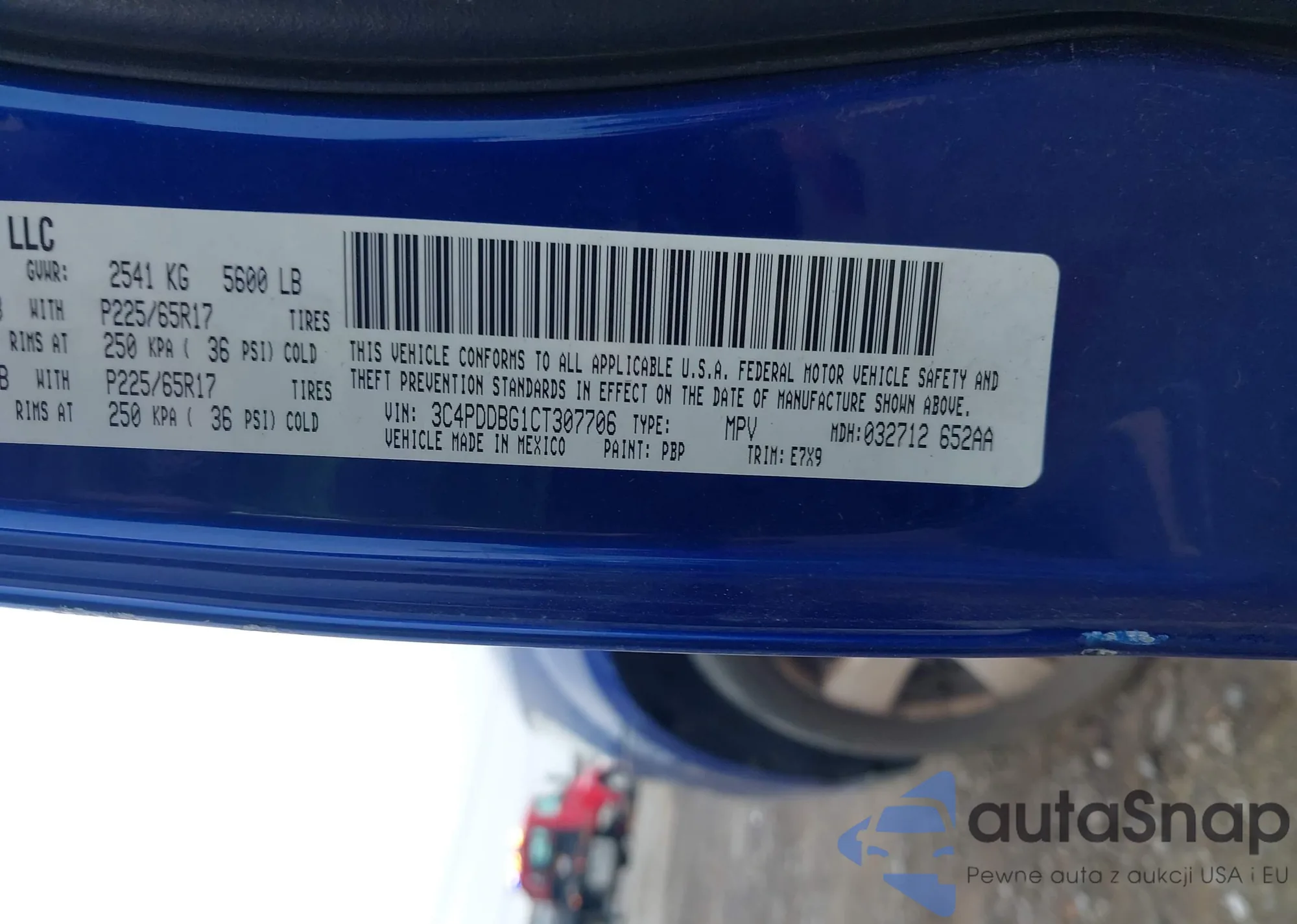 • VIN: 3C4PDDBG1CT307706