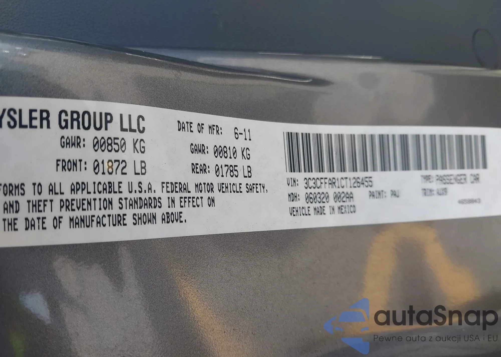 VIN: 3C3CFFAR1CT126455