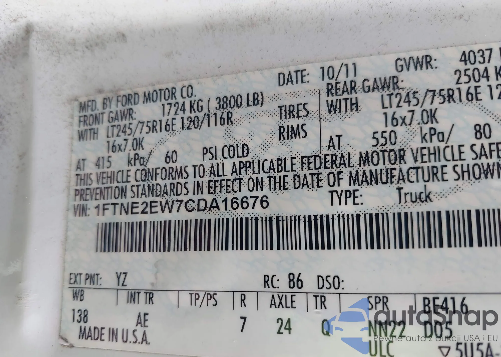 VIN: 1FTNE2EW7CDA16676