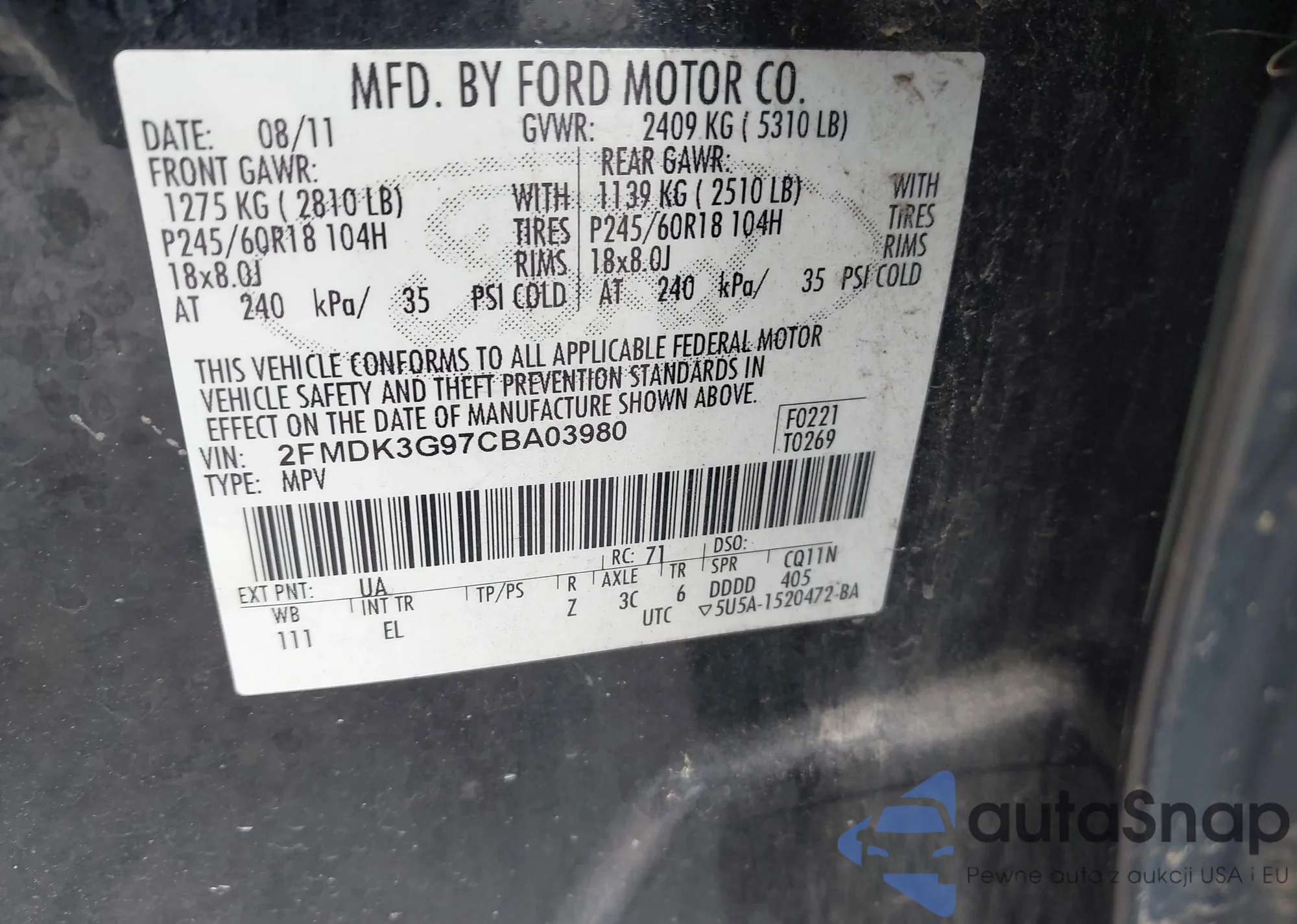 VIN: 2FMDK3G97CBA03980