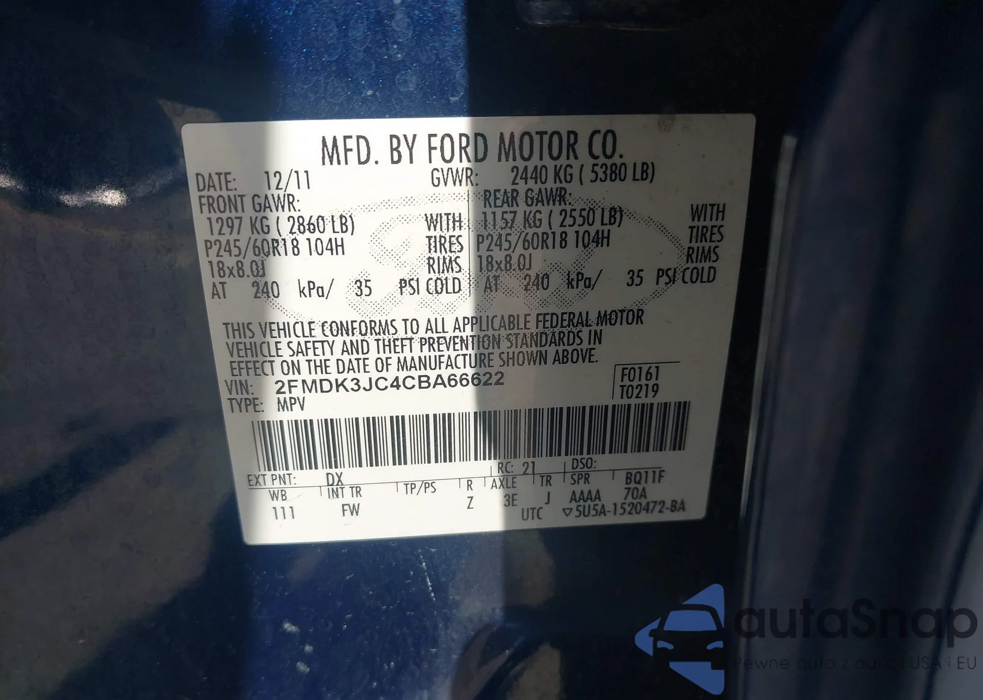 VIN: 2FMDK3JC4CBA66622