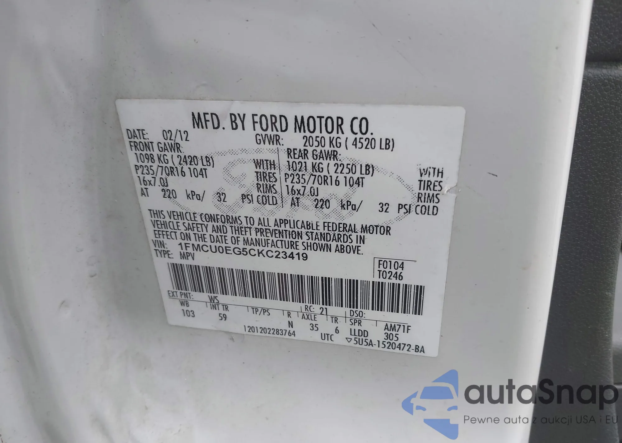 VIN: 1FMCU0EG5CKC23419