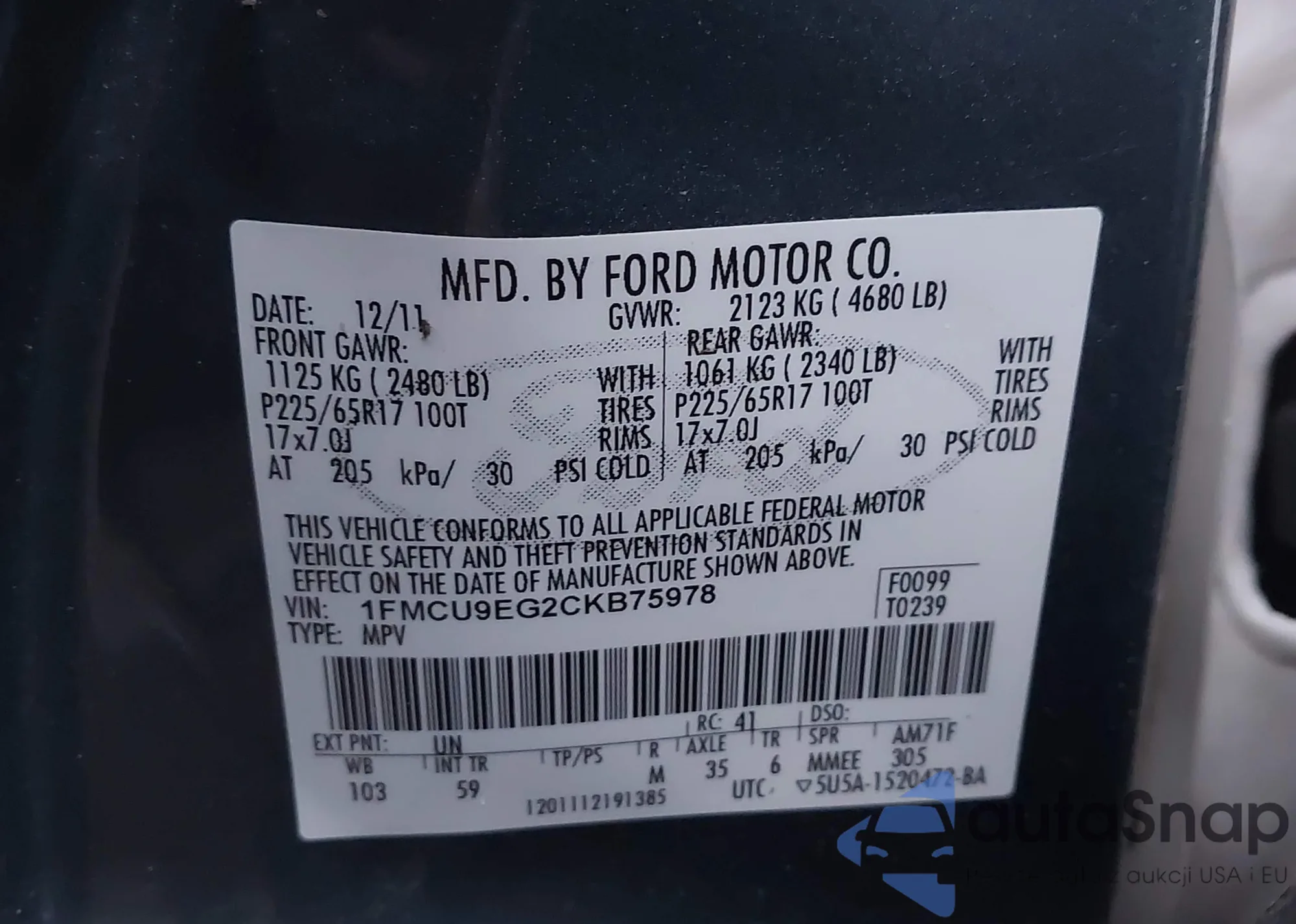 VIN: 1FMCU9EG2CKB75978