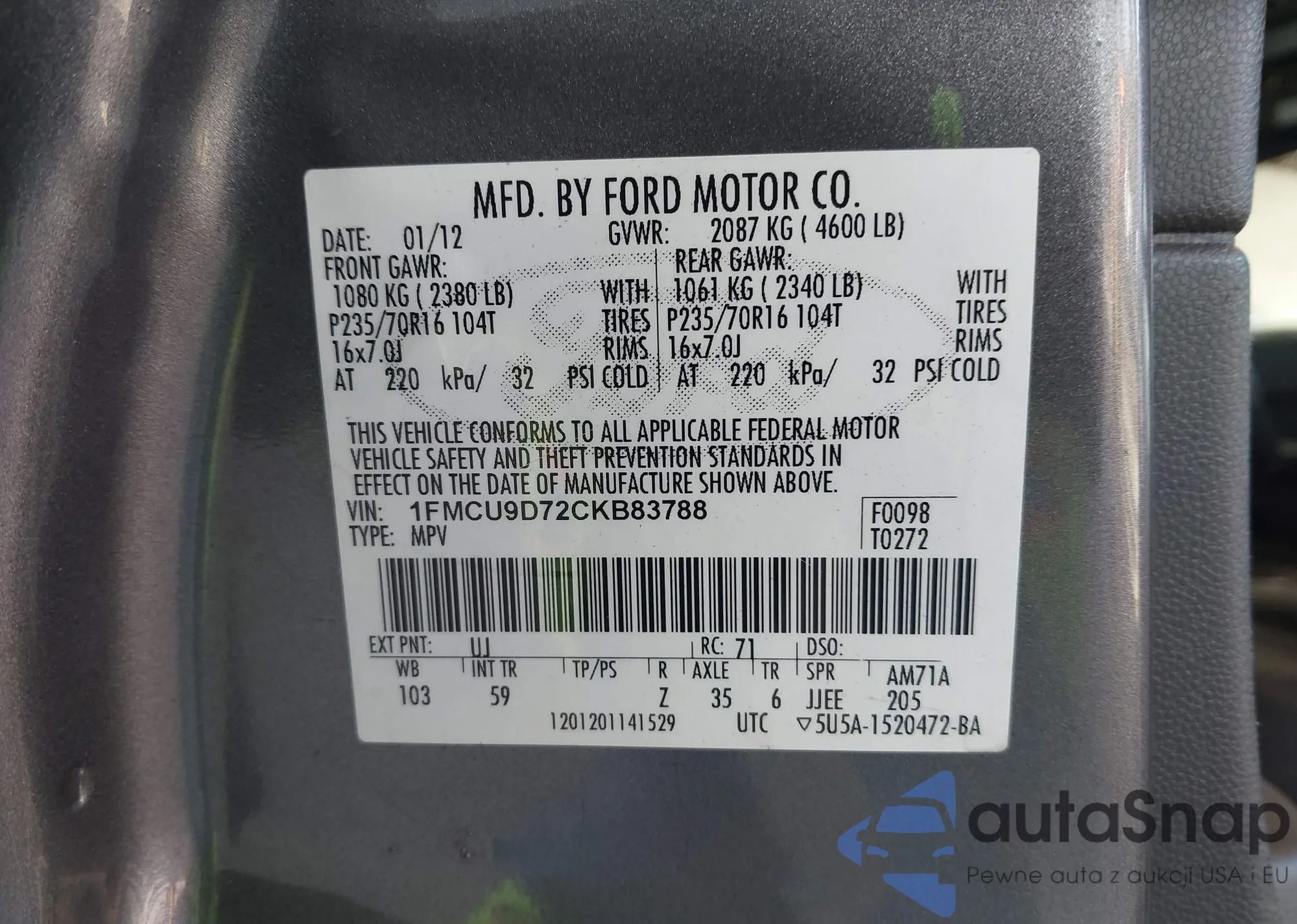 VIN: 1FMCU9D72CKB83788
