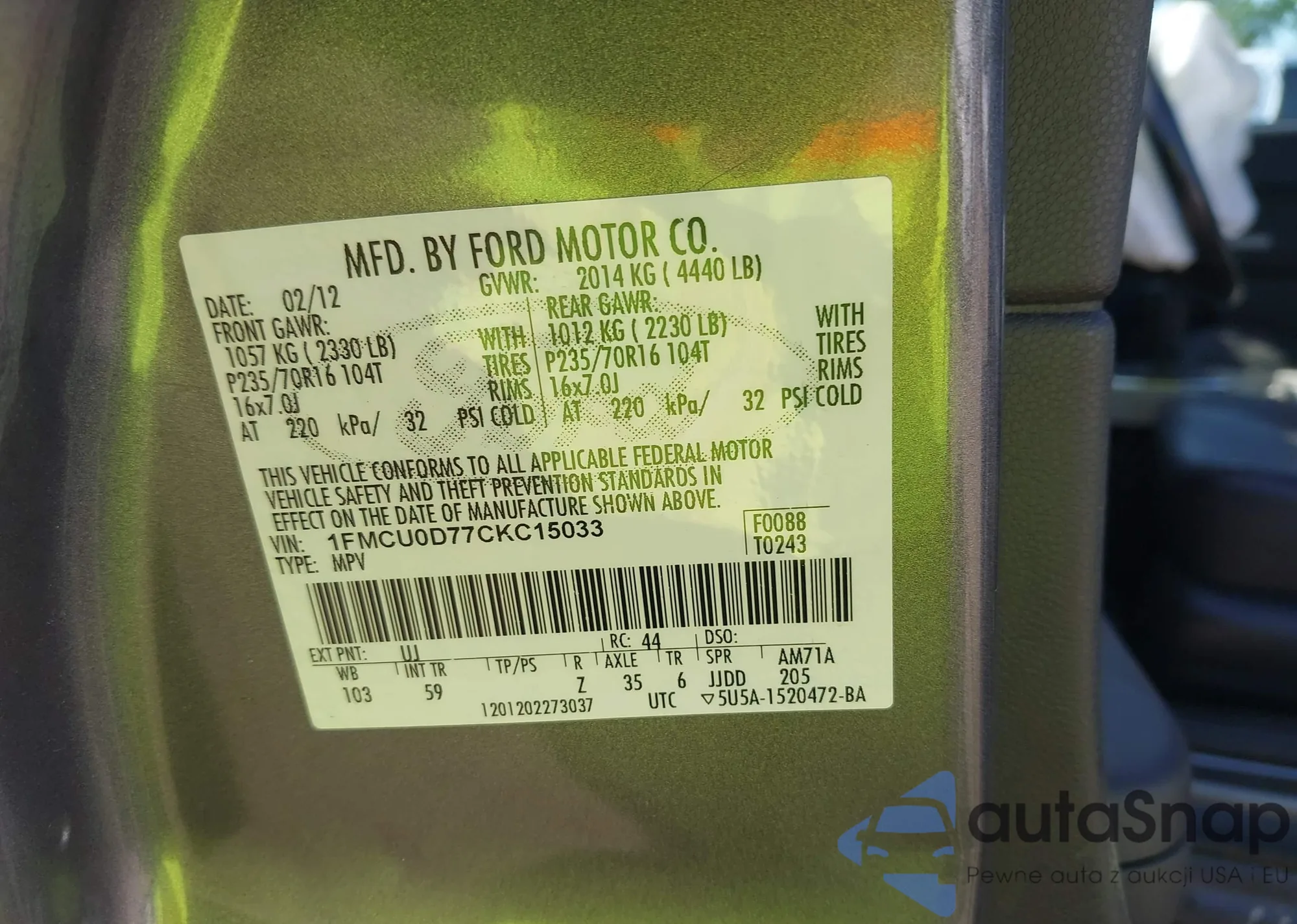 VIN: 1FMCU0D77CKC15033