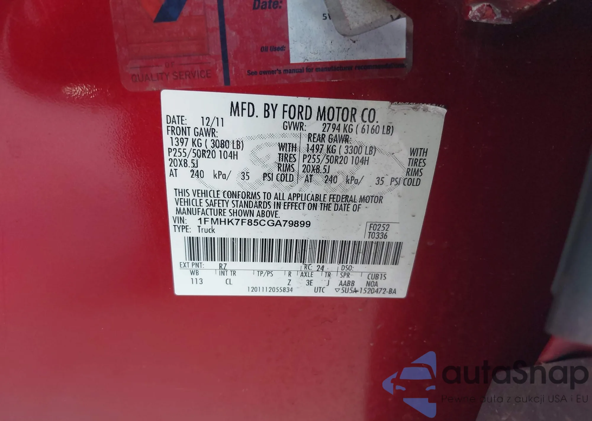 VIN: 1FMHK7F85CGA79899