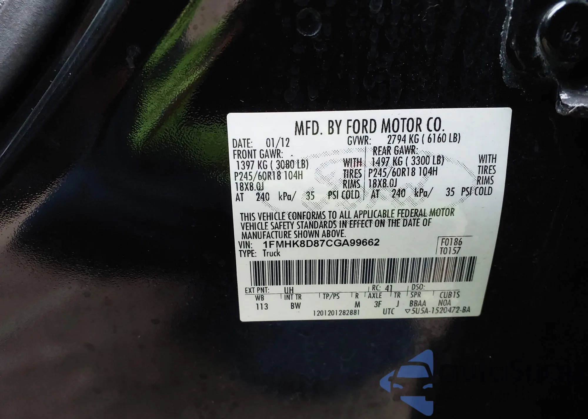 VIN: 1FMHK8D87CGA99662