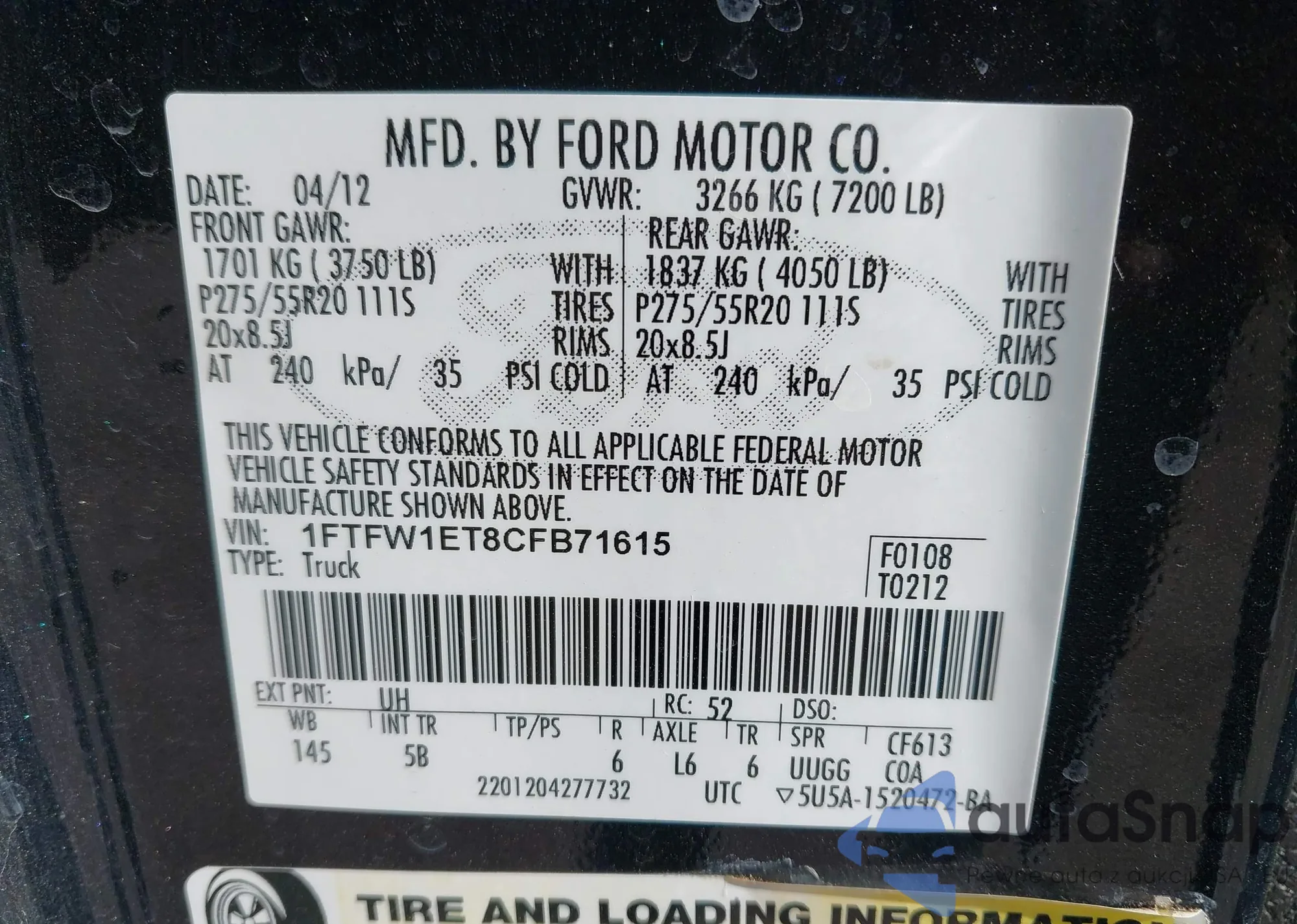 VIN: 1FTFW1ET8CFB71615