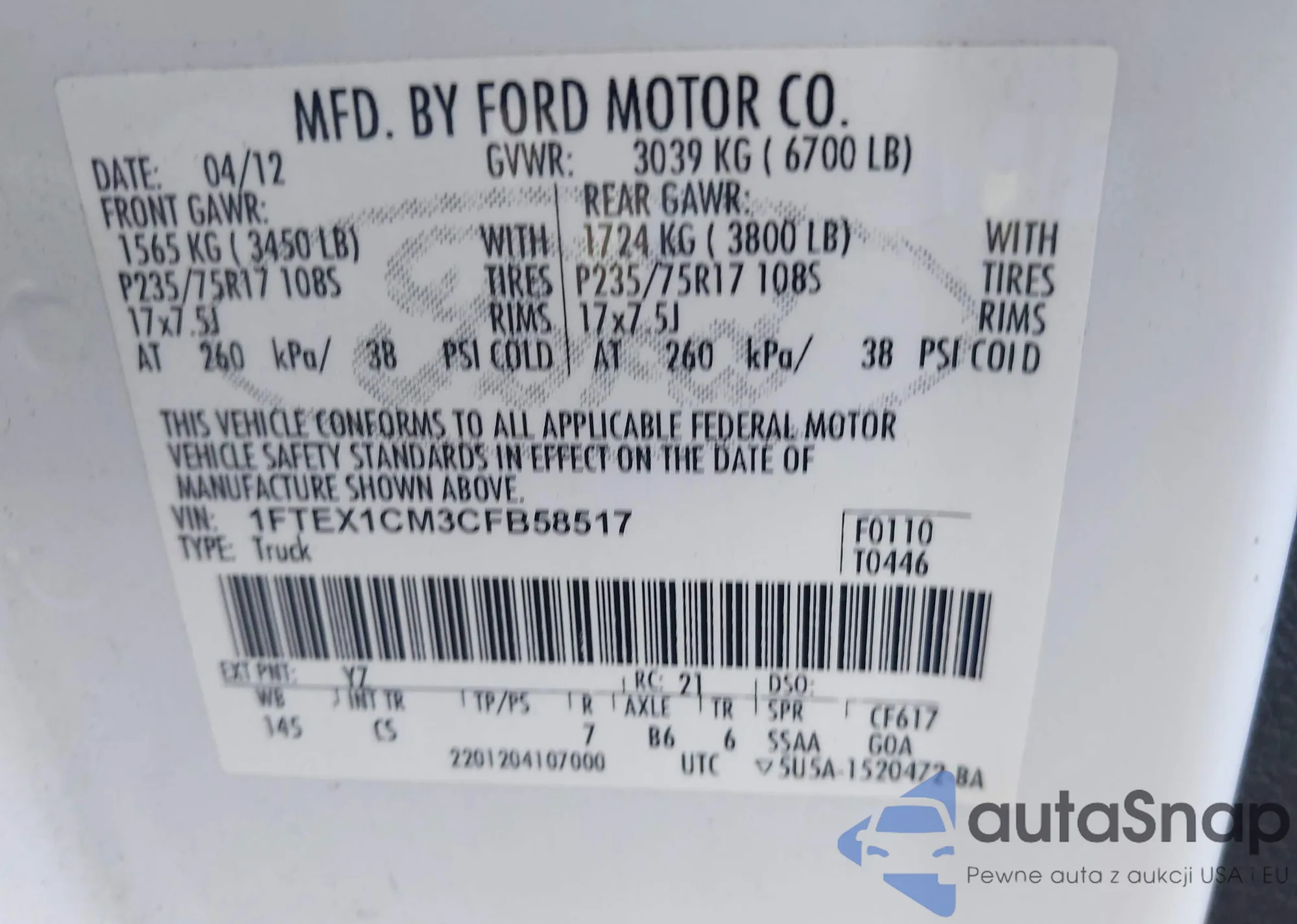 VIN: 1FTEX1CM3CFB58517