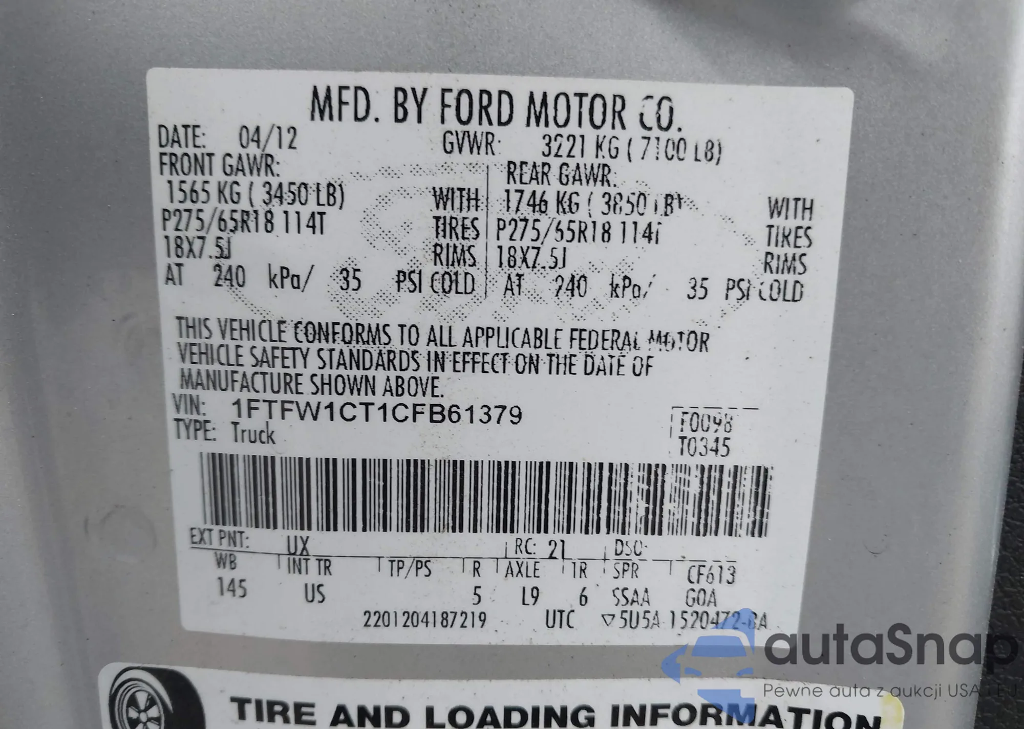 VIN: 1FTFW1CT1CFB61379
