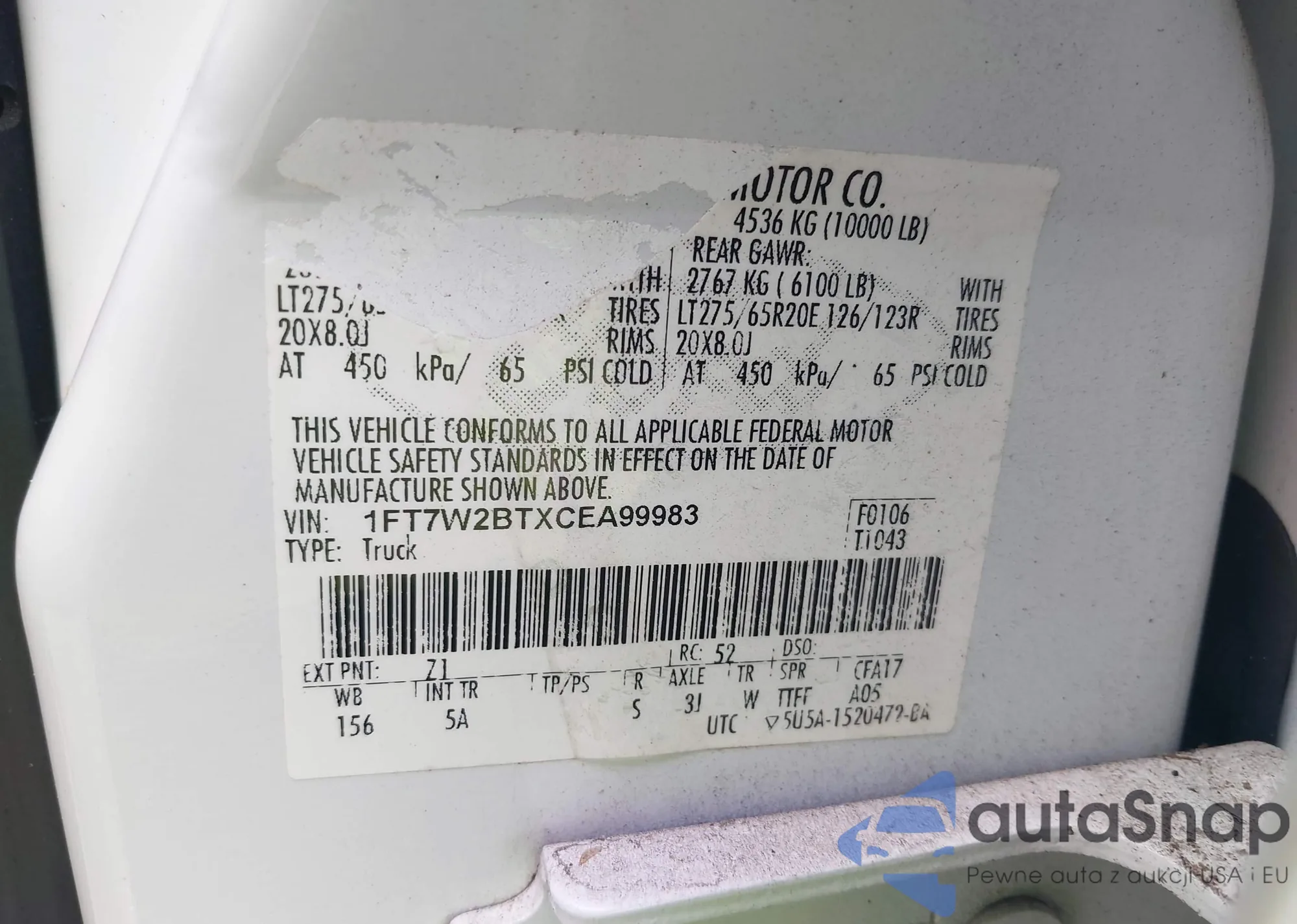 VIN: 1FT7W2BTXCEA99983