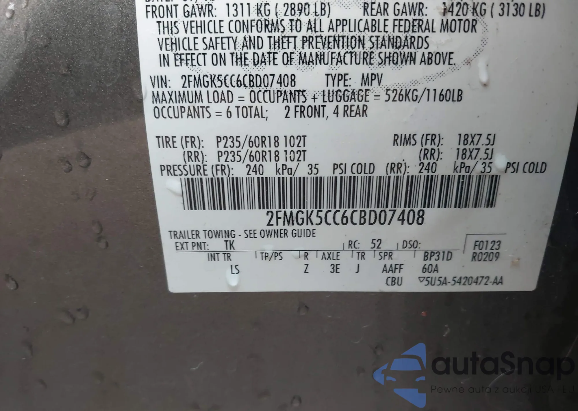 VIN: 2FMGK5CC6CBD07408