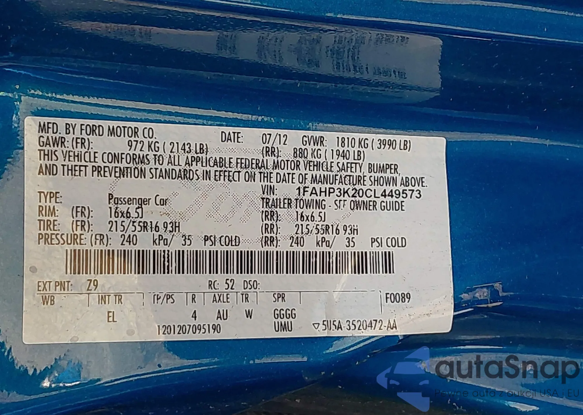 VIN: 1FAHP3K20CL449573