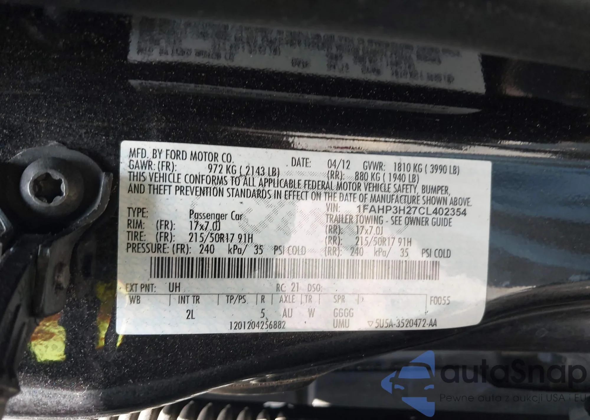 VIN: 1FAHP3H27CL402354