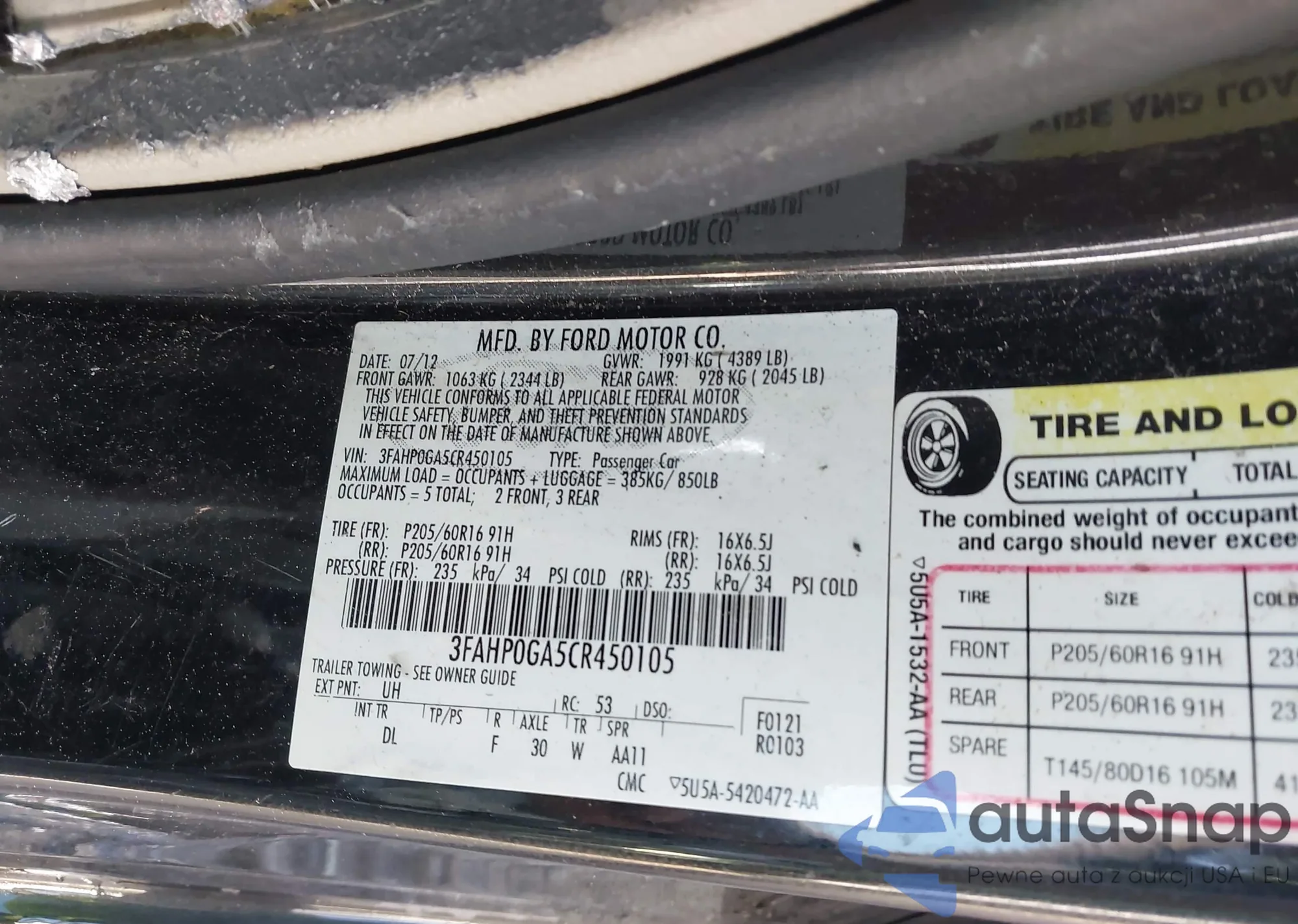 VIN: 3FAHP0GA5CR450105