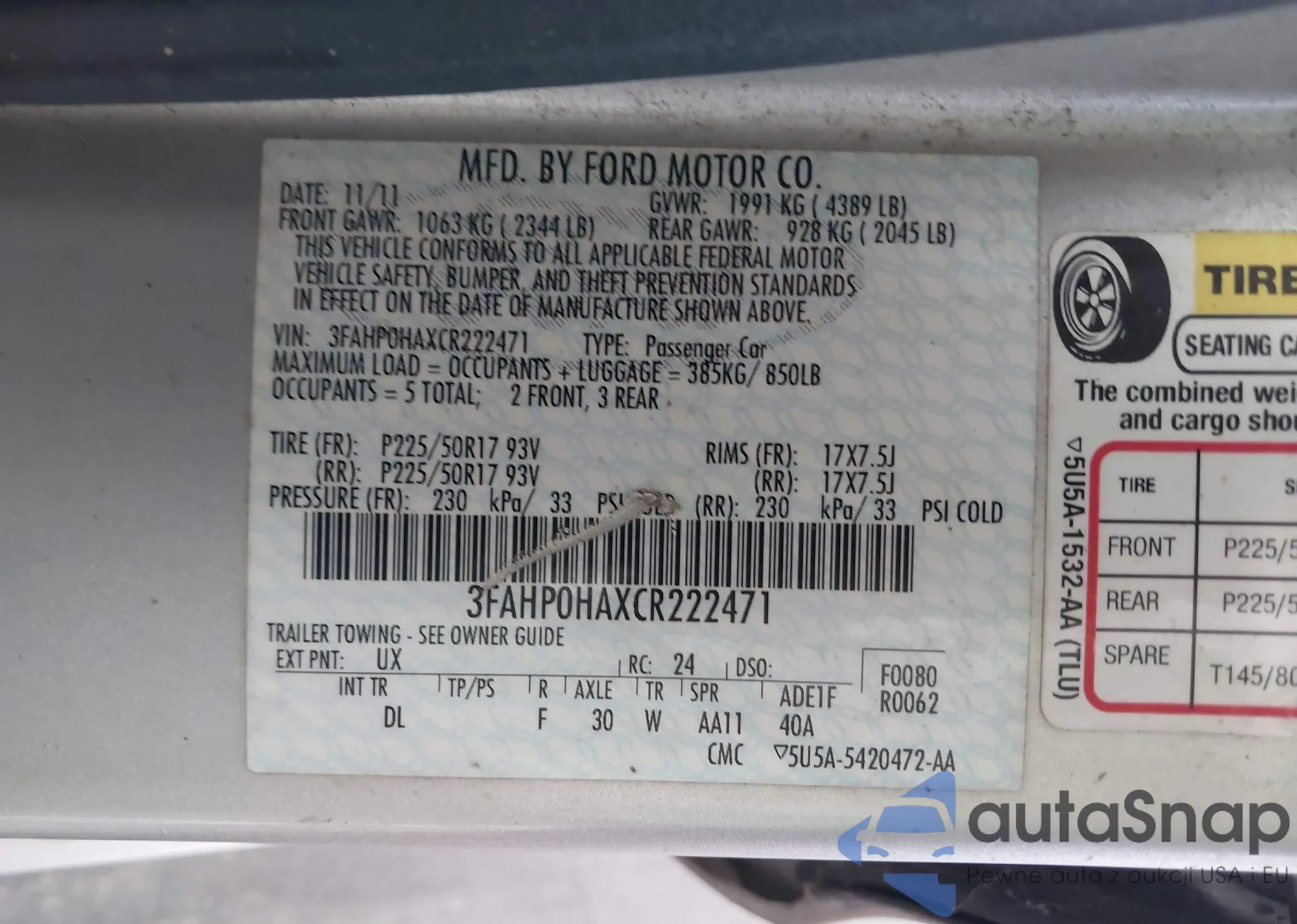 VIN: 3FAHP0HAXCR222471