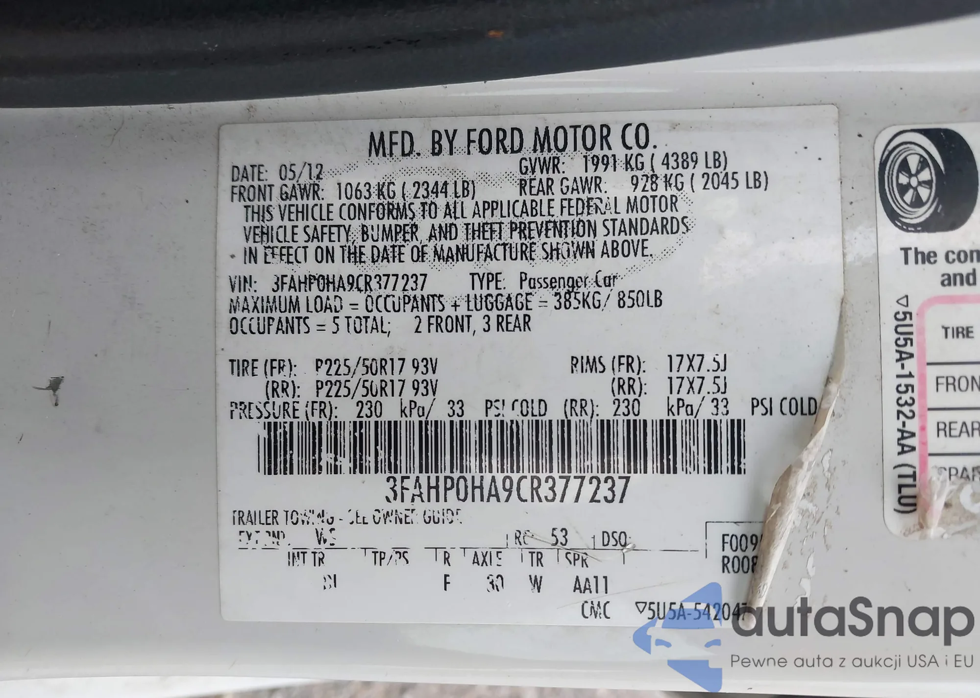 VIN: 3FAHP0HA9CR377237