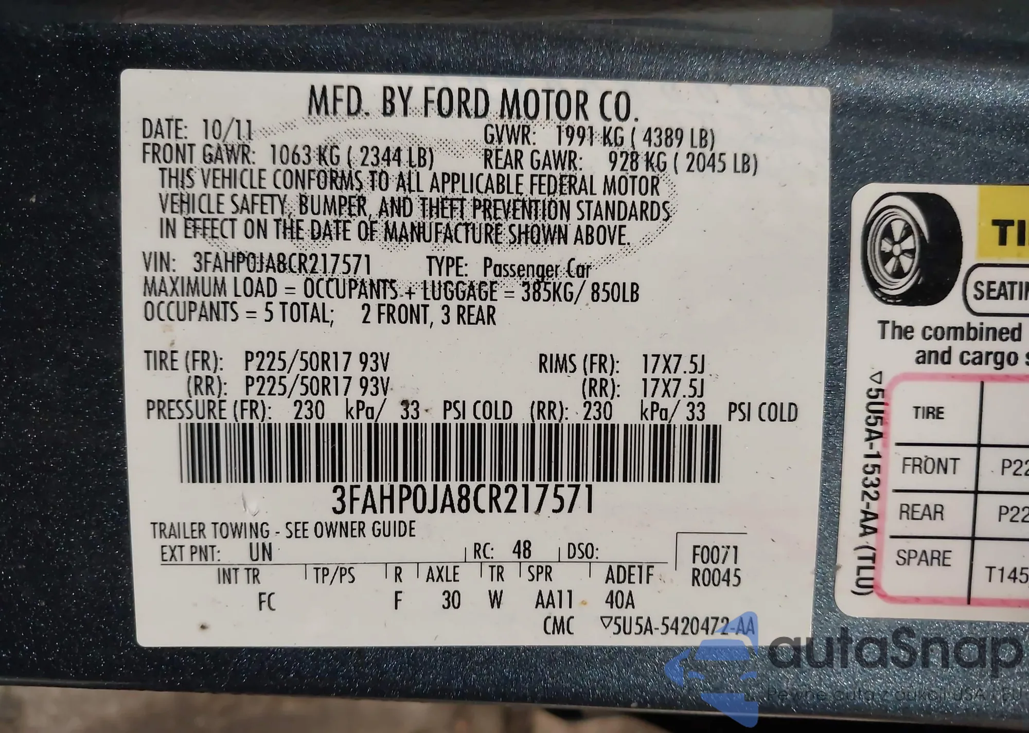 Samochód Ford Fusion 2012 (VIN 3FAHP0JA8CR217571) nie był wcześniej licytowany. Dokumenty są czyste, przebieg odpowiada lub jest niższy niż średnia rynku. Sprzedaje go firma ubezpieczeniowa – polecamy zakup. Dostawa do portu zajmie ok. 6–8 tygodni.