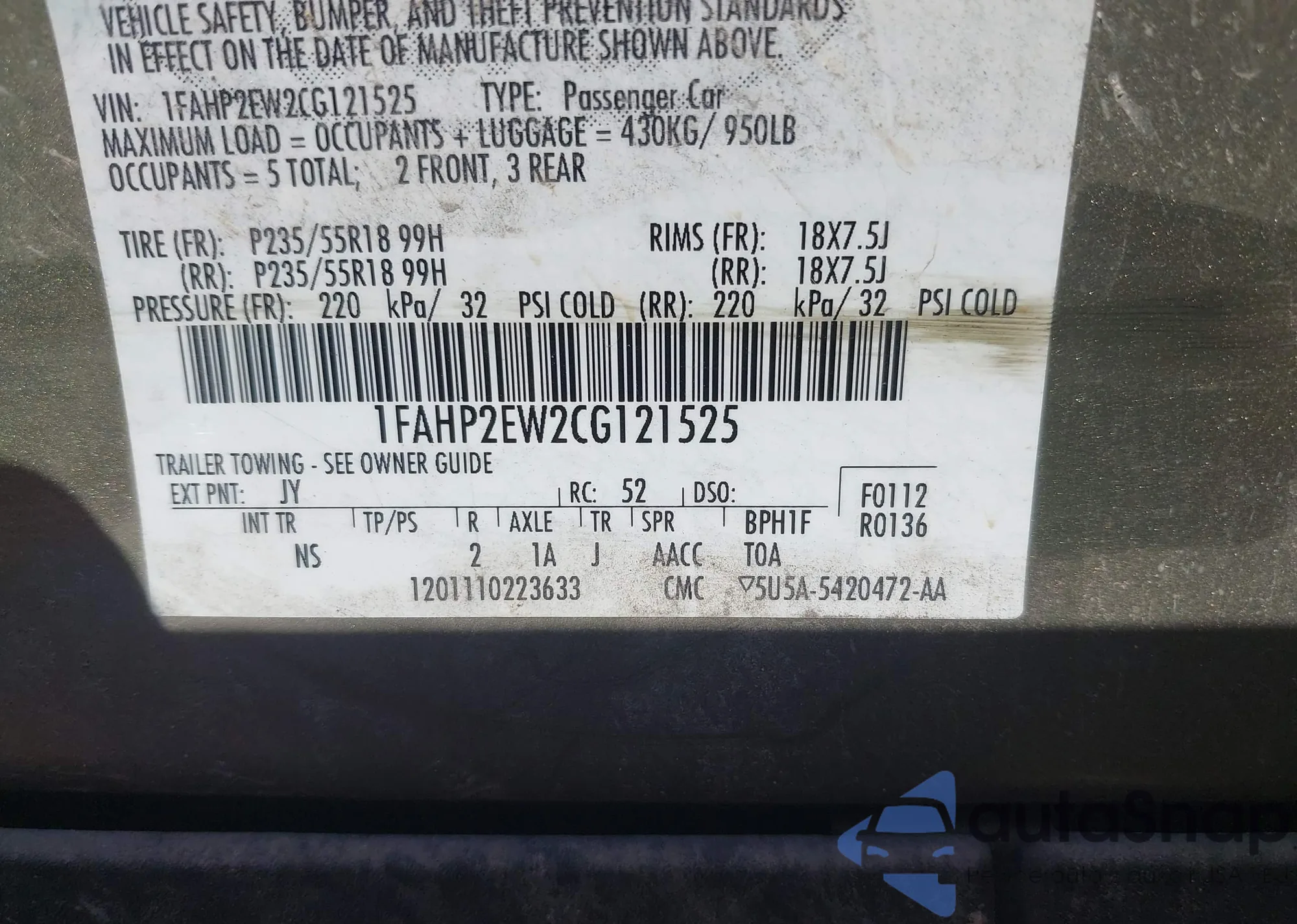 • VIN: 1FAHP2EW2CG121525