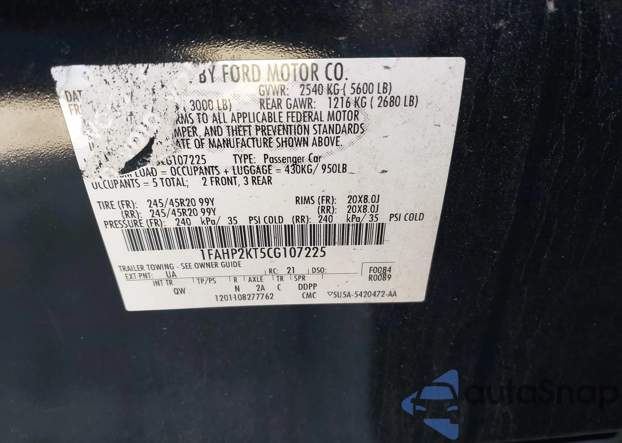 Samochód Ford Taurus 2012 (VIN 1FAHP2KT5CG107225) był już licytowany 1 razy i/lub sprzedaje go niezweryfikowany sprzedawca. Zalecamy raport Carfax i potwierdzenie możliwości rejestracji pojazdu przed zakupem.