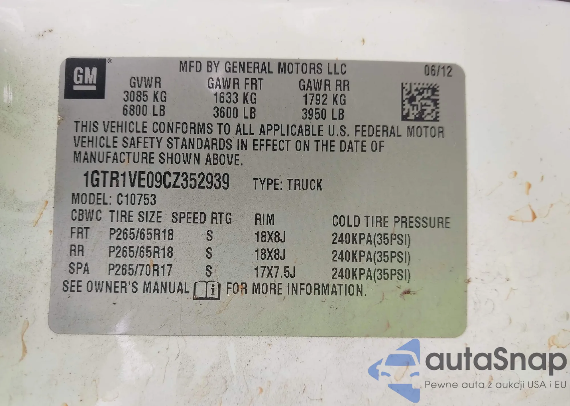 VIN: 1GTR1VE09CZ352939