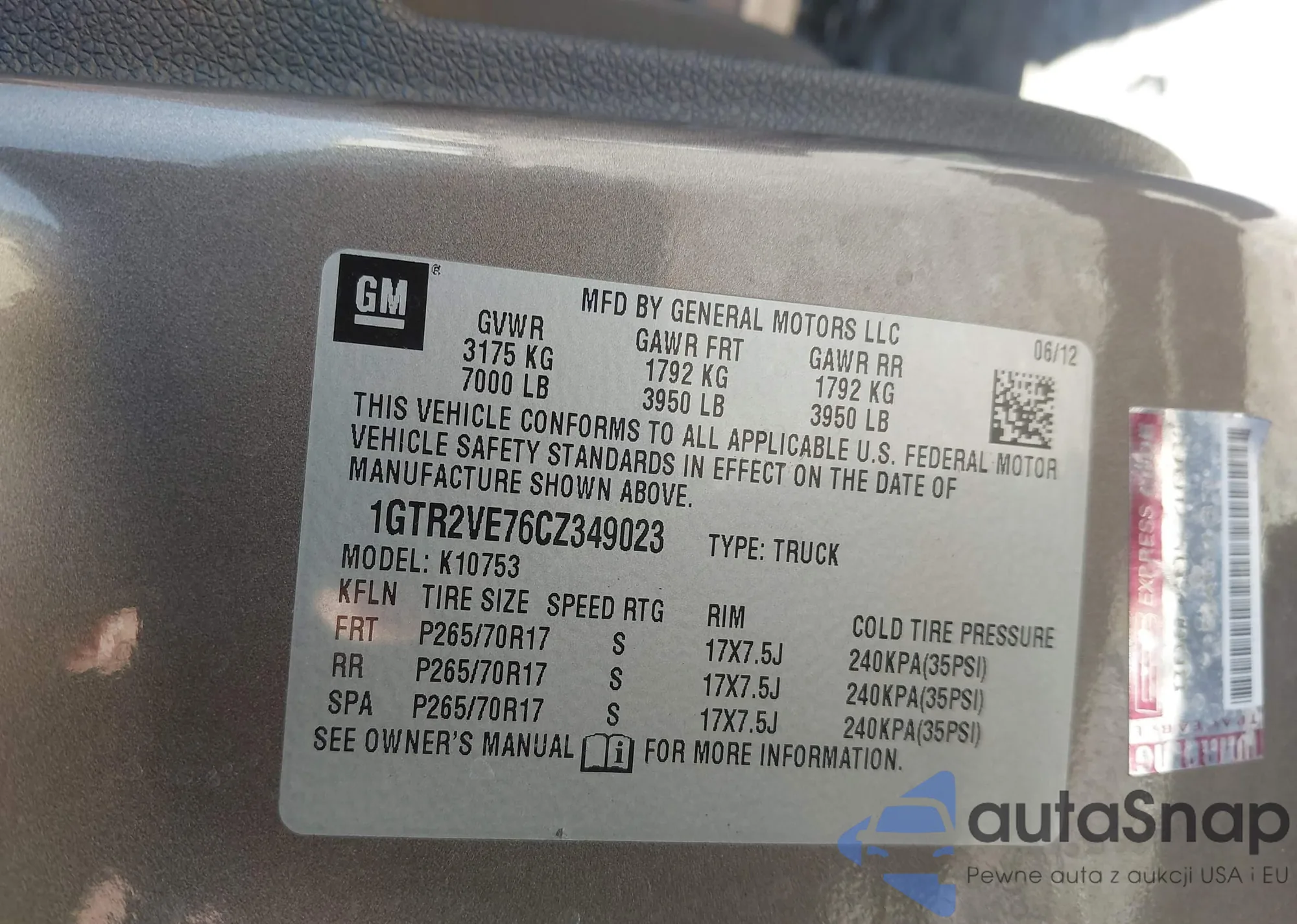 VIN: 1GTR2VE76CZ349023