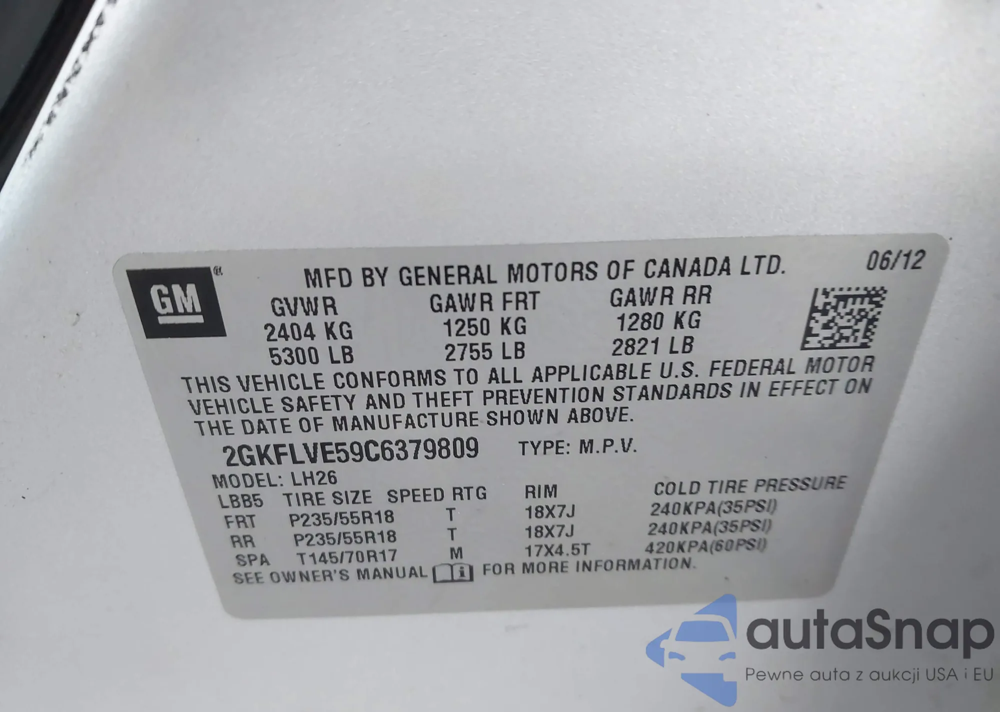 VIN: 2GKFLVE59C6379809