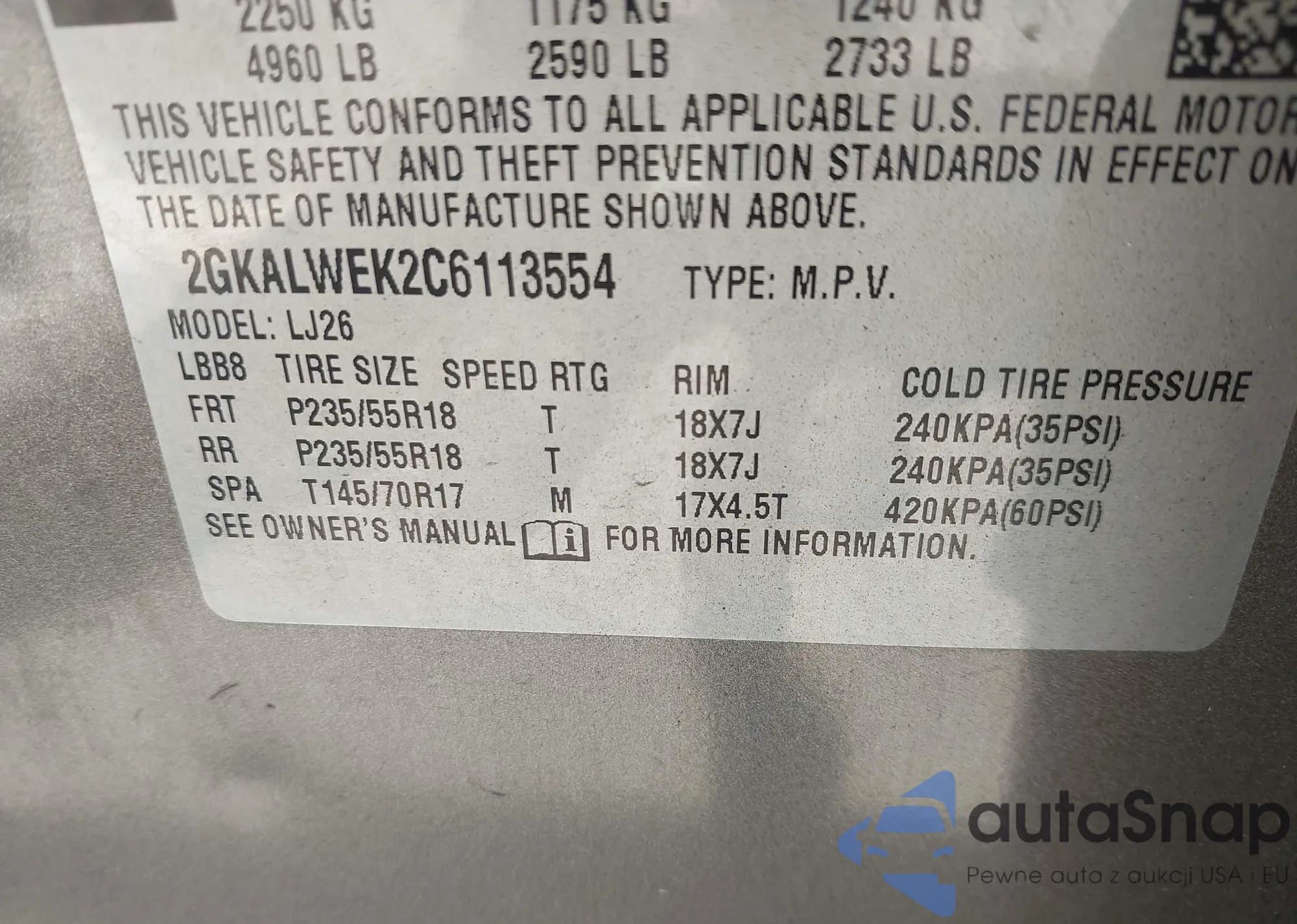 VIN: 2GKALWEK2C6113554