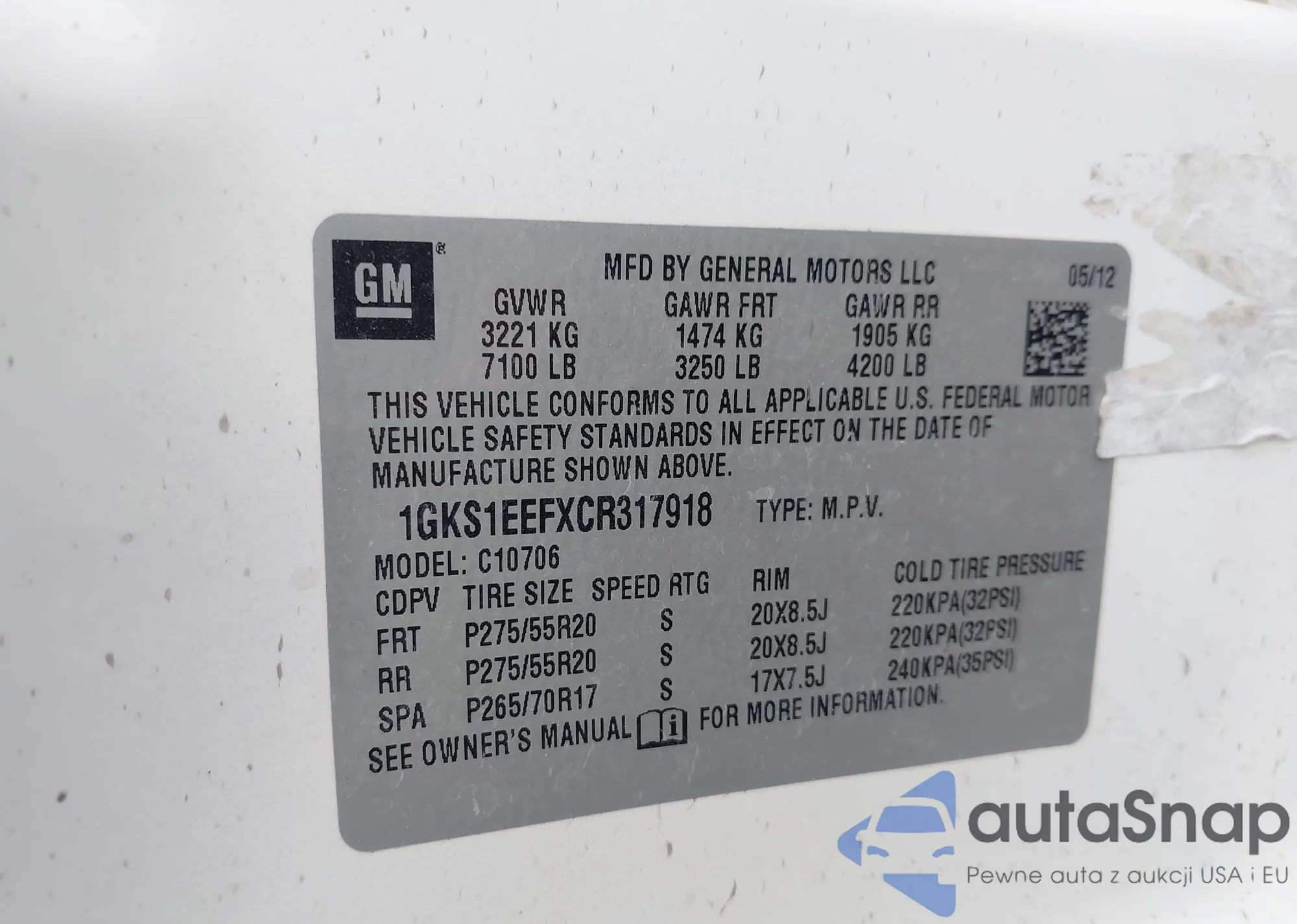 VIN: 1GKS1EEFXCR317918