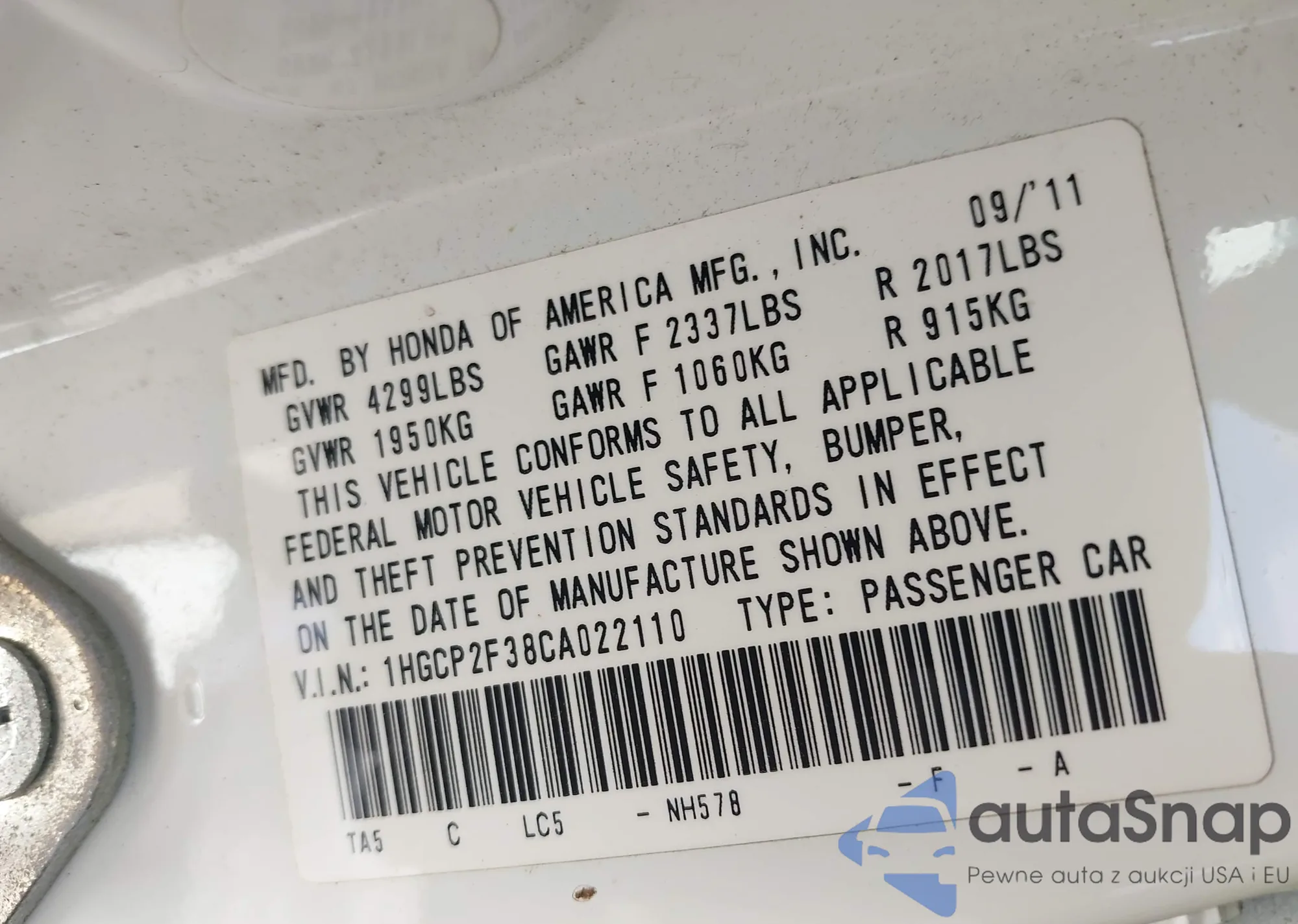 VIN: 1HGCP2F38CA022110